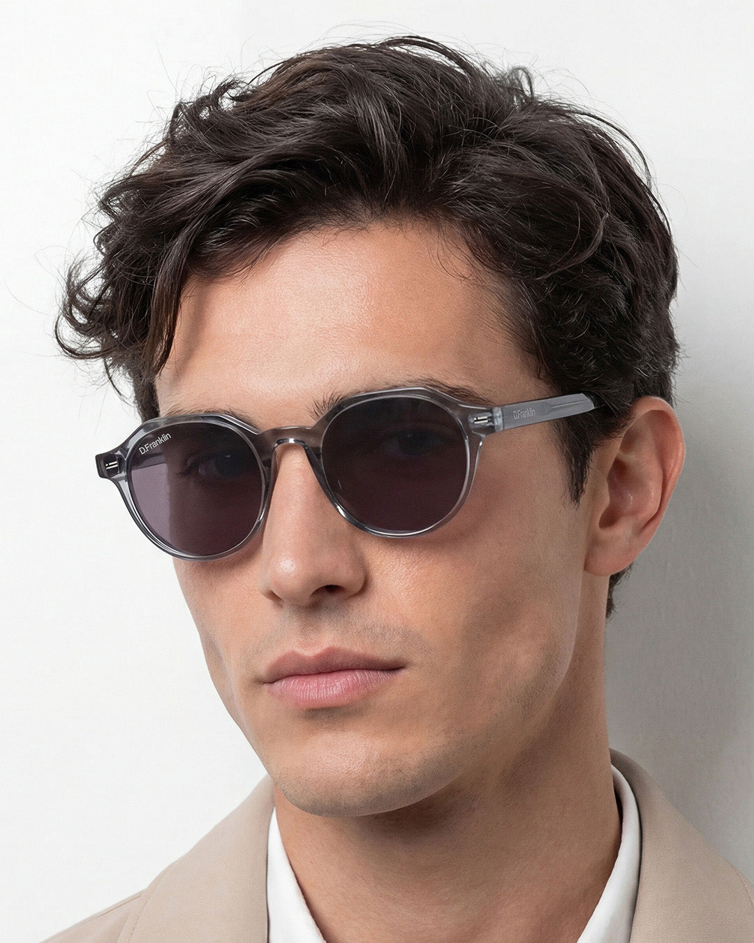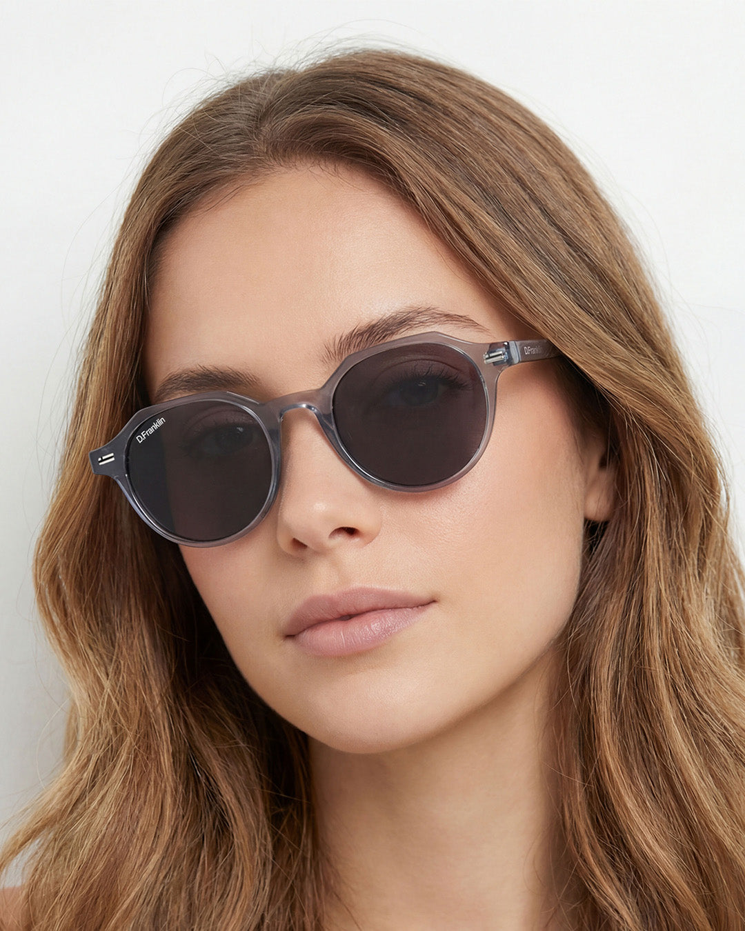 Its blue tinted acrylic round smoked lenses and TR90 frame in brown degrade highlight the timelessness of this model, with a unique touch. It features our distinctive D.Franklin details: the logo engraved on both metal temples and our emblem on the right lens. With a lens width of 47 mm and a front frame of 138 mm, these glasses flatter most faces. The side temples have a length of 145 mm.