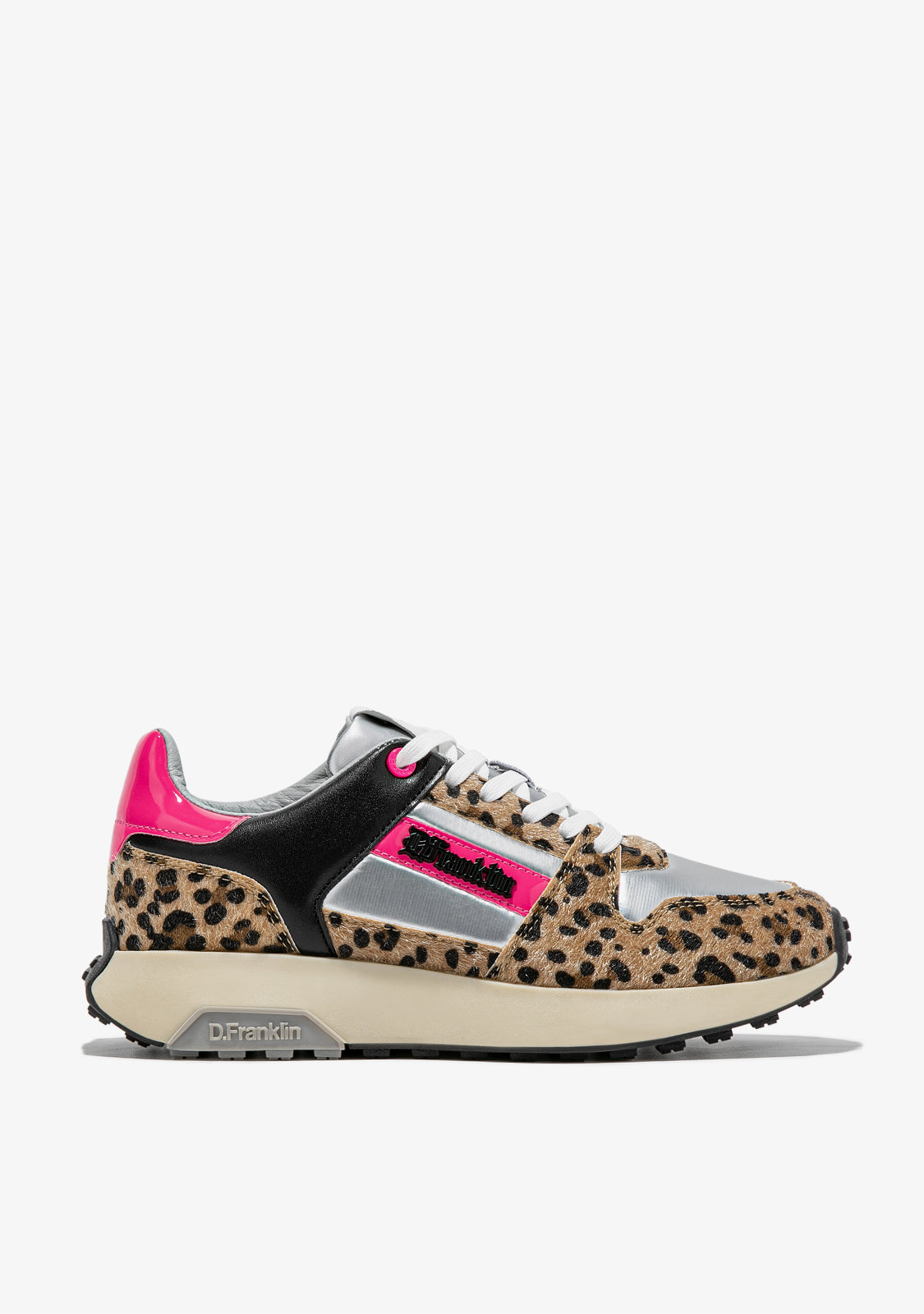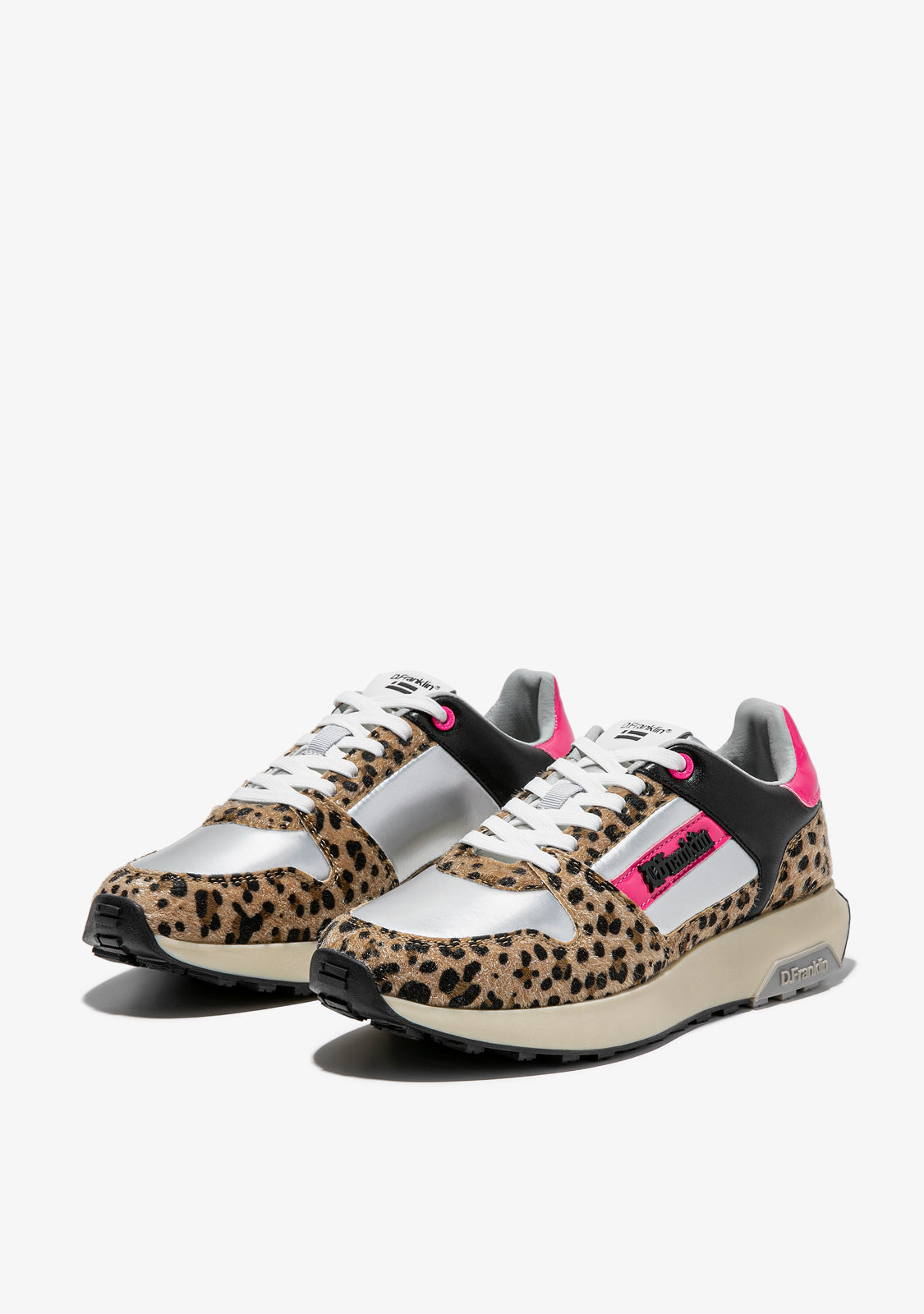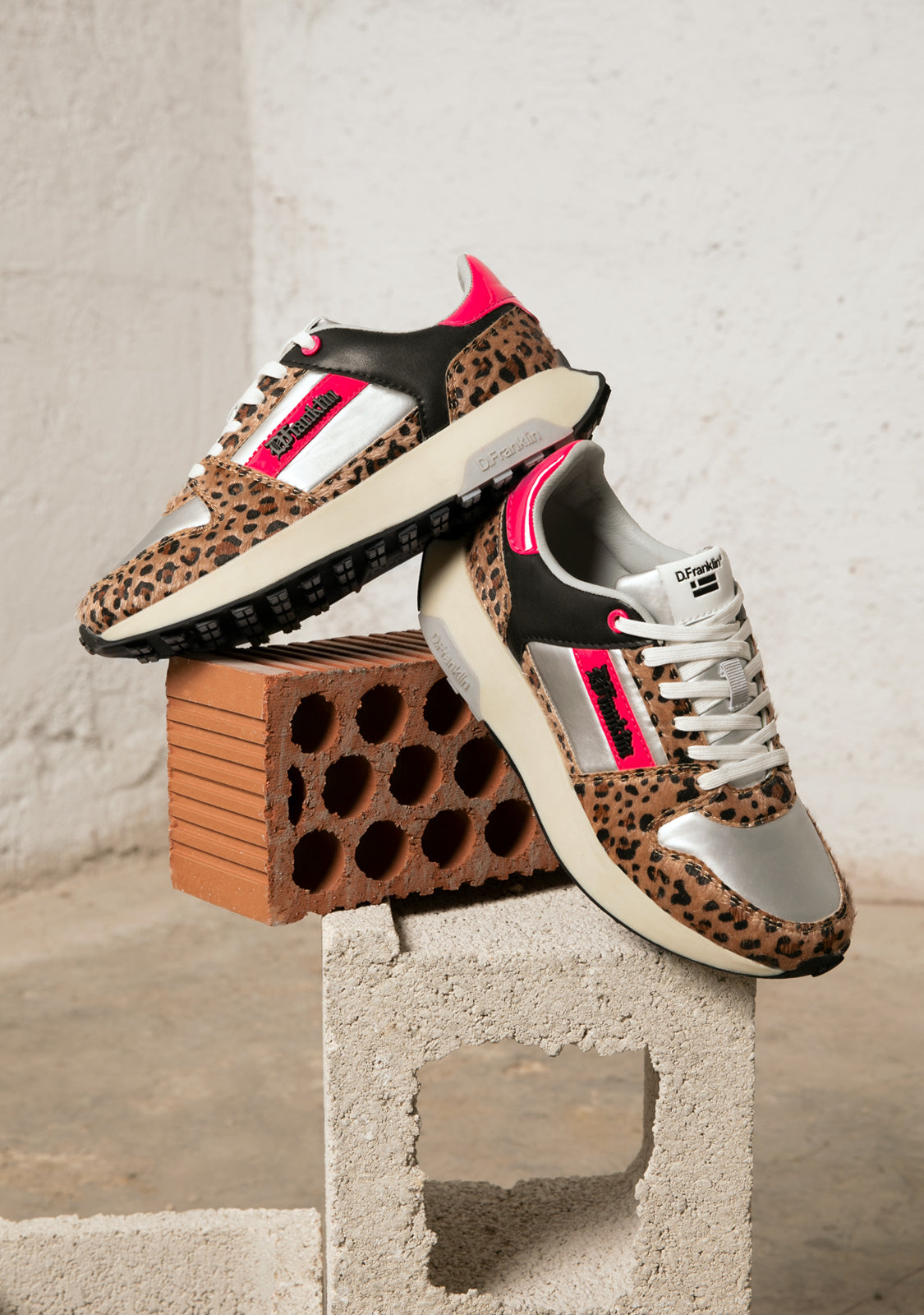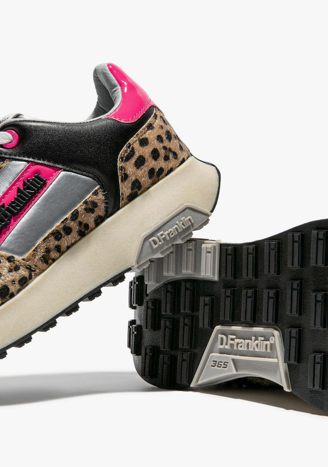 Ce modèle fusionne un imprimé animal avec des tons fuchsia électriques qui mettent en valeur son unicité. Il a un logo D.Franklin sur le côté et des lacets en coton pour un ajustement parfait. De plus, il dispose d'une semelle à deux densités. La première est faite de matériaux recyclés pour une marche confortable et légère, et la seconde est embossée pour offrir une adhérence.