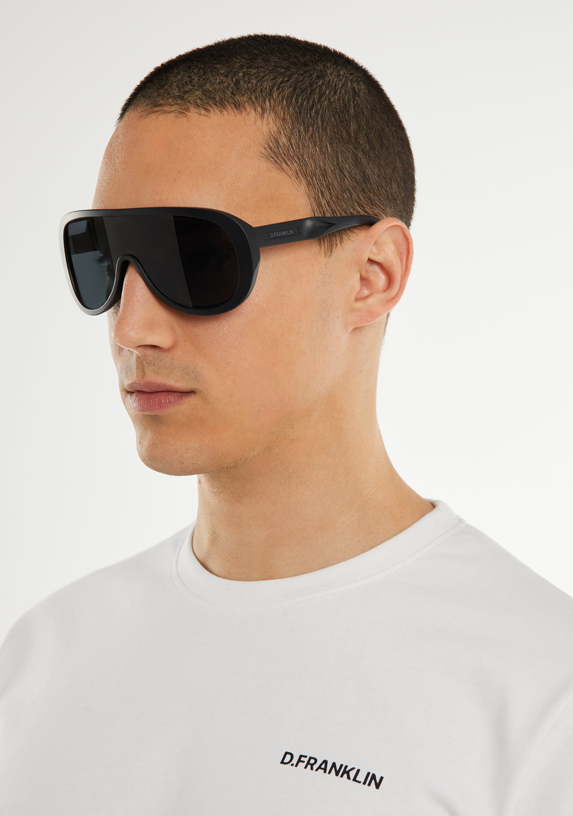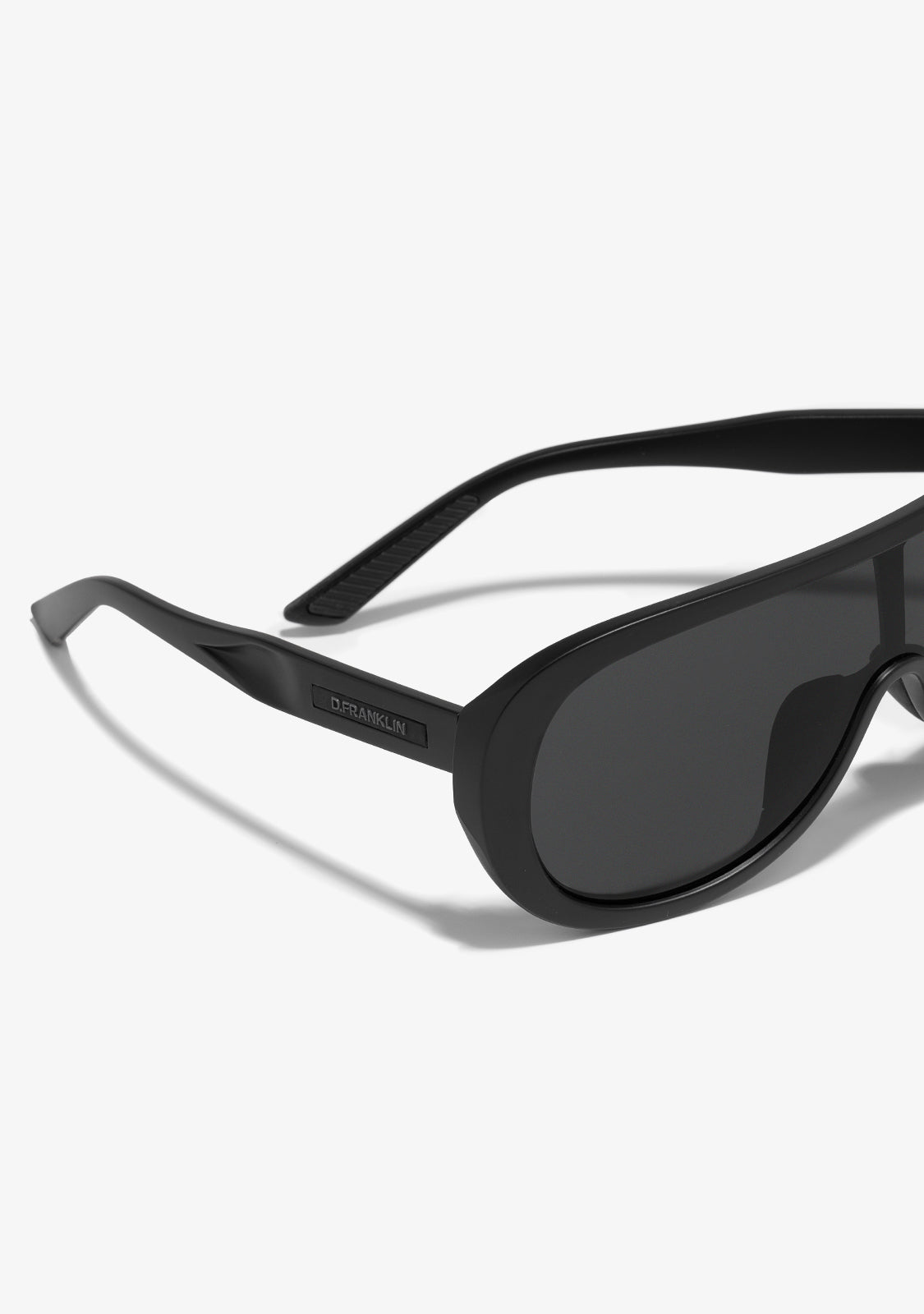 Ce modèle présente une monture en finition noire mate avec une esthétique légèrement courbée. Il est équipé de verres fumés et de notre emblème signature sur le côté des branches. La largeur uniforme des verres de 131 mm et le cadre avant de 147 mm sont reliés par une branche de 135 mm.