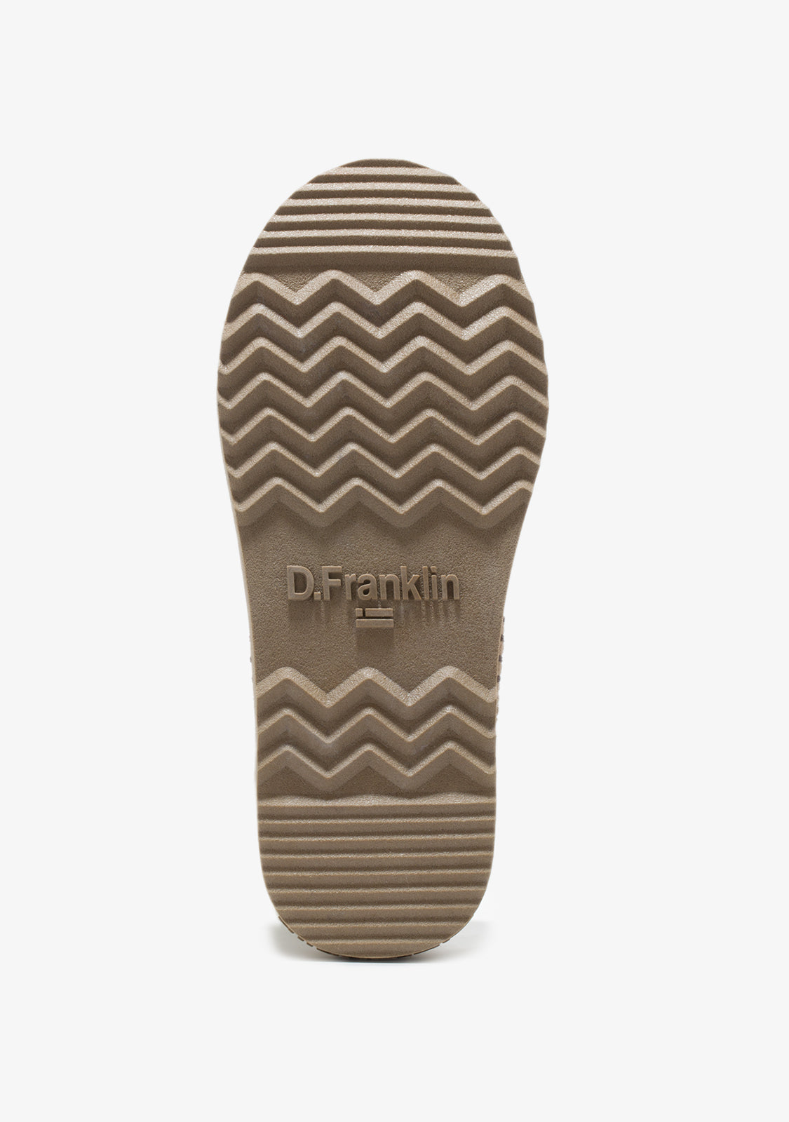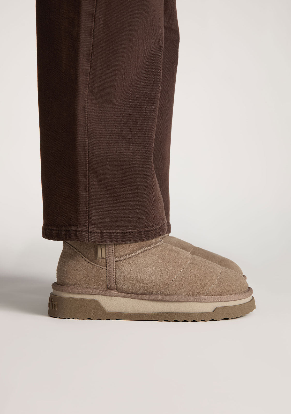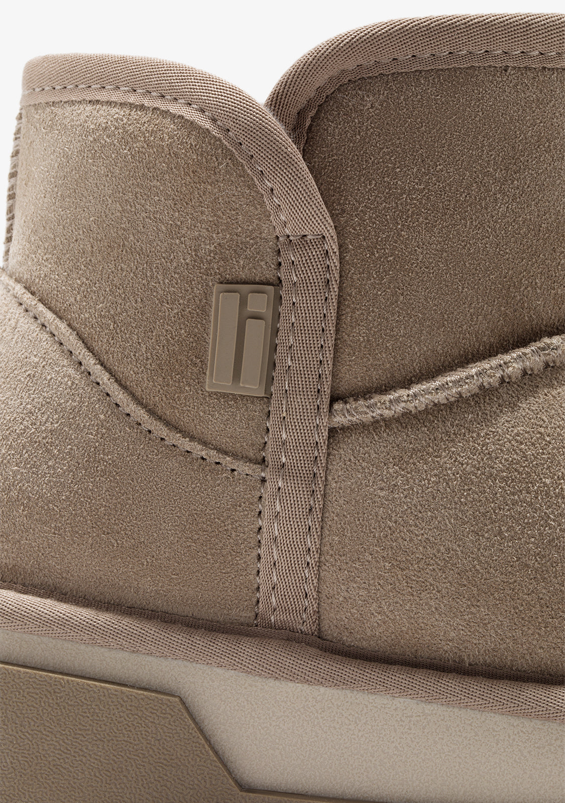 La semelle en caoutchouc offre stabilité et adhérence, tandis que le design en taupe doux rend ces bottes parfaites pour ceux qui recherchent des chaussures pratiques et élégantes.