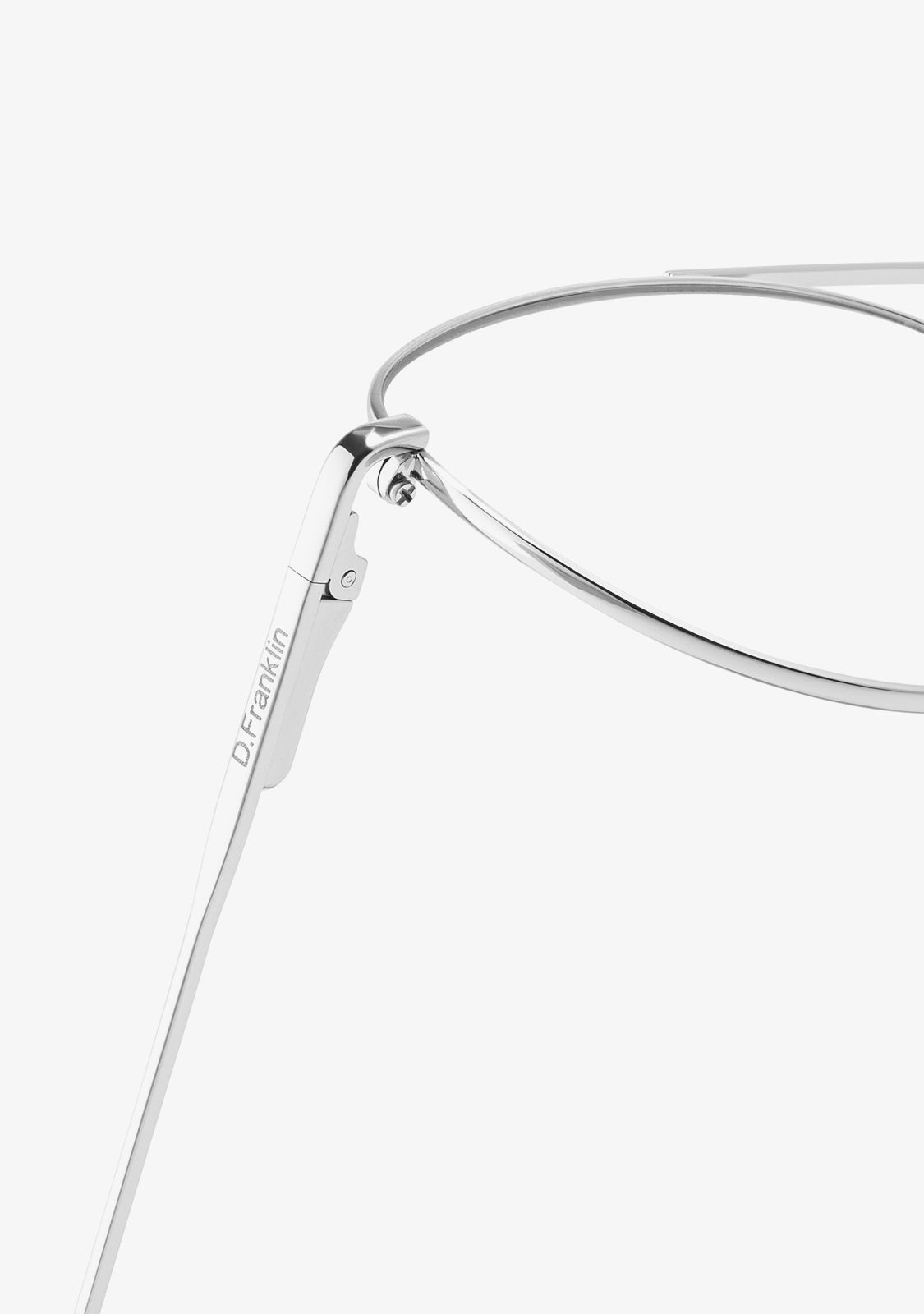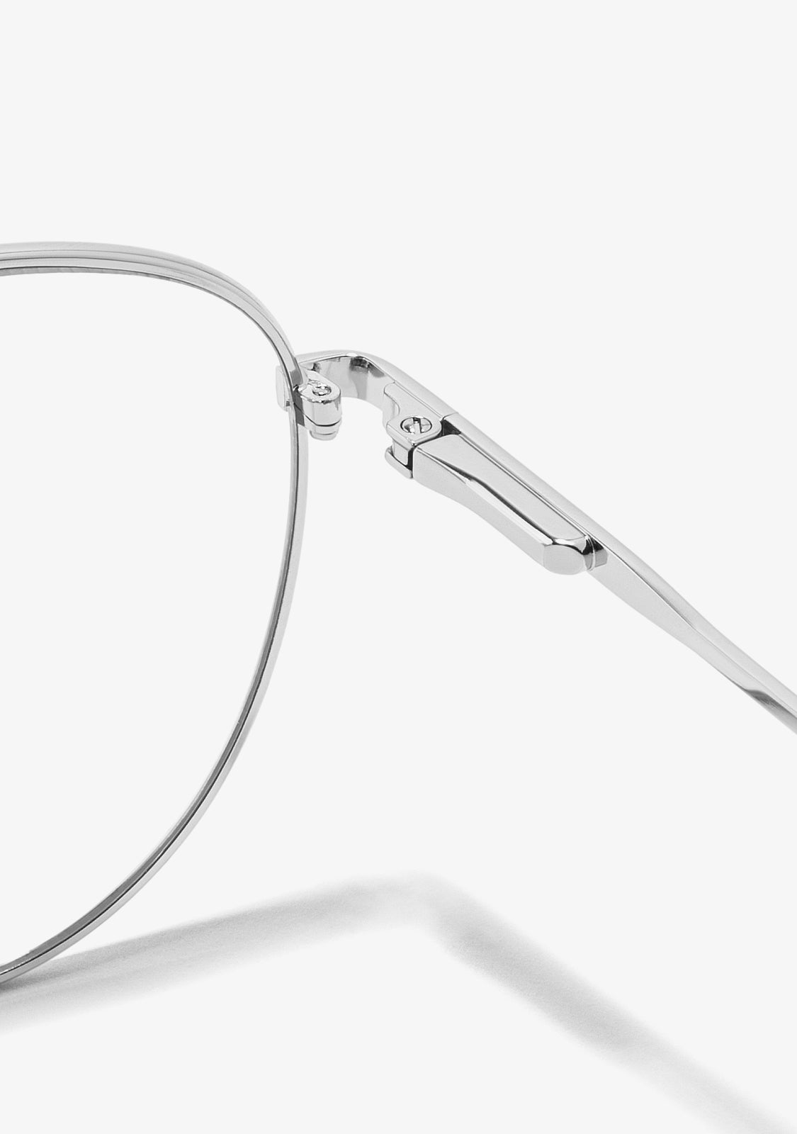 Symétrie parfaite. Découvrez la collection exclusive Aviator Elanor Blue Block / Silver, des lunettes rondes avec des montures à finition métallique inspirées des classiques les plus populaires des années 70.