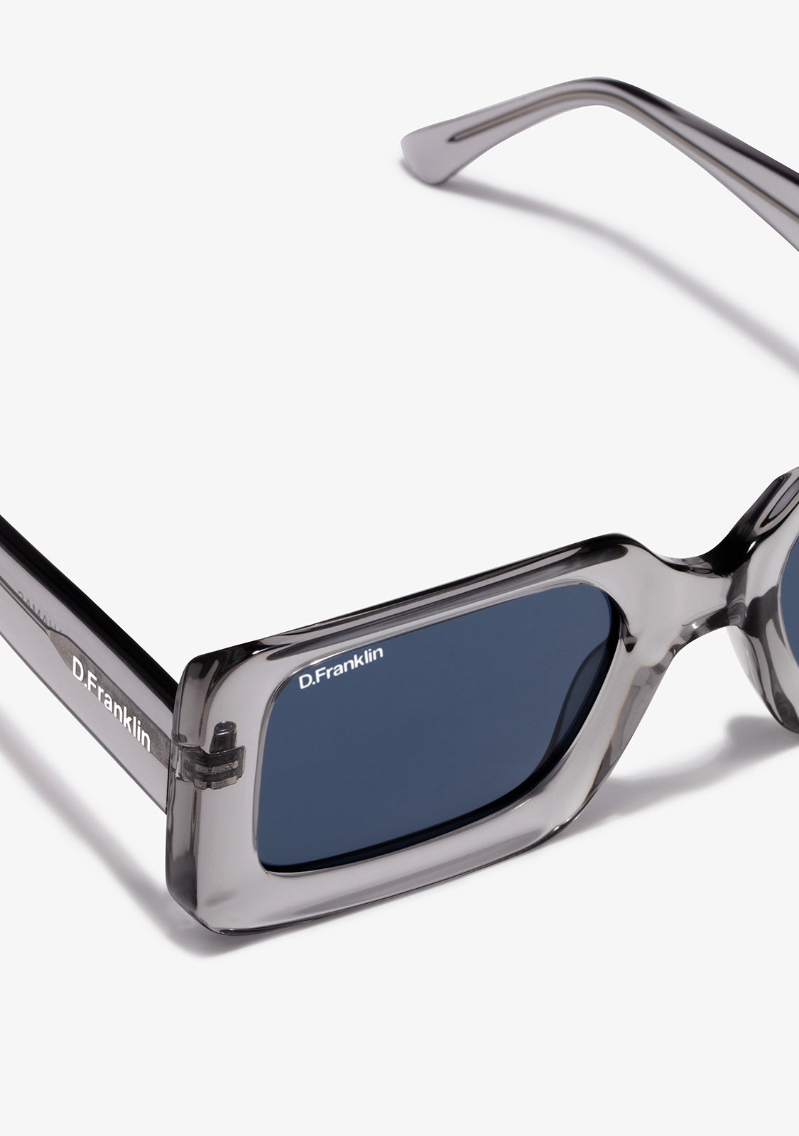 Lunettes de soleil avec des montures rectangulaires et une finition transparente. Inspirées par les paysages des endroits où nous voulons voyager.