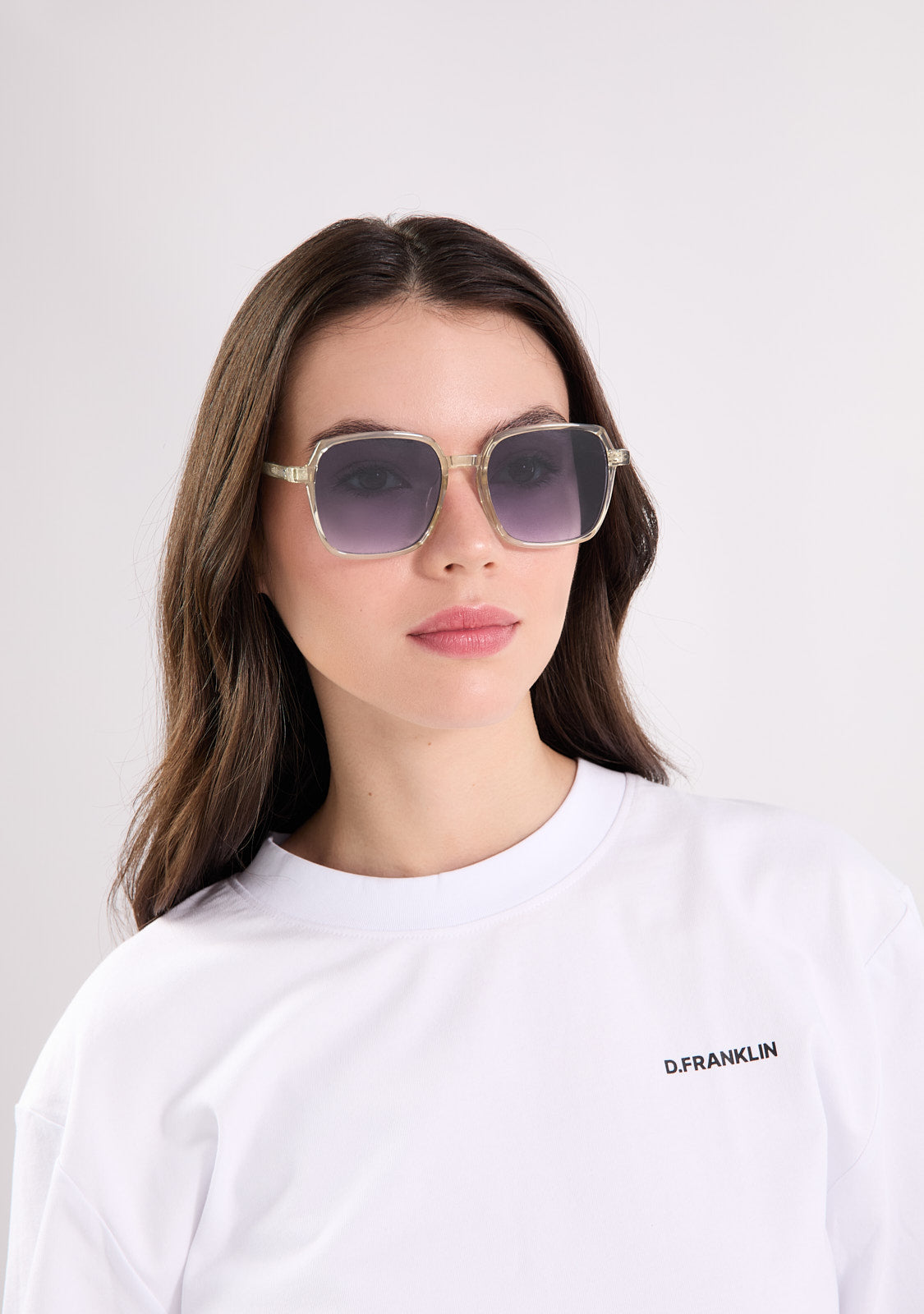 Les lunettes de soleil Banger Transparent / Gradient Lavender de D.Franklin sont conçues pour ceux qui recherchent le style et le confort dans leur vie quotidienne. Fabriquées avec une monture en TR, un pont et des branches, elles offrent légèreté, durabilité et un ajustement parfait qui s'adapte confortablement à toutes les formes de visage.