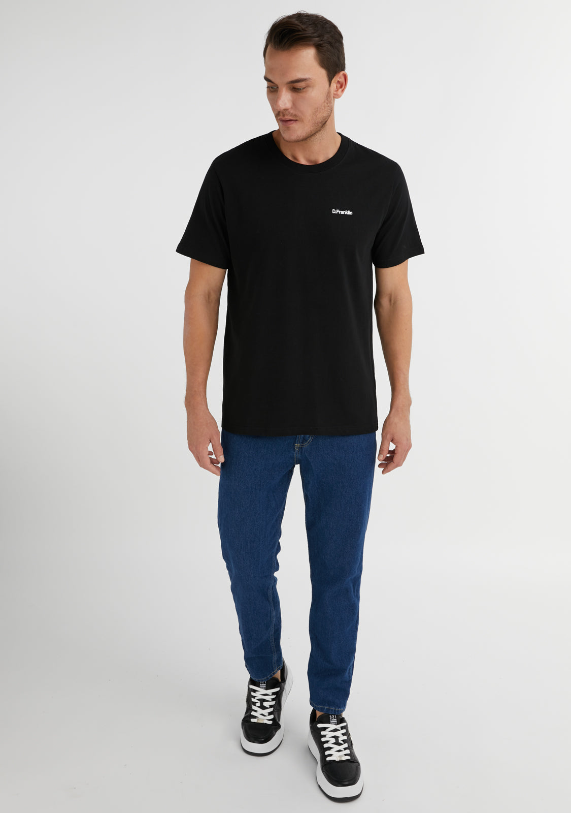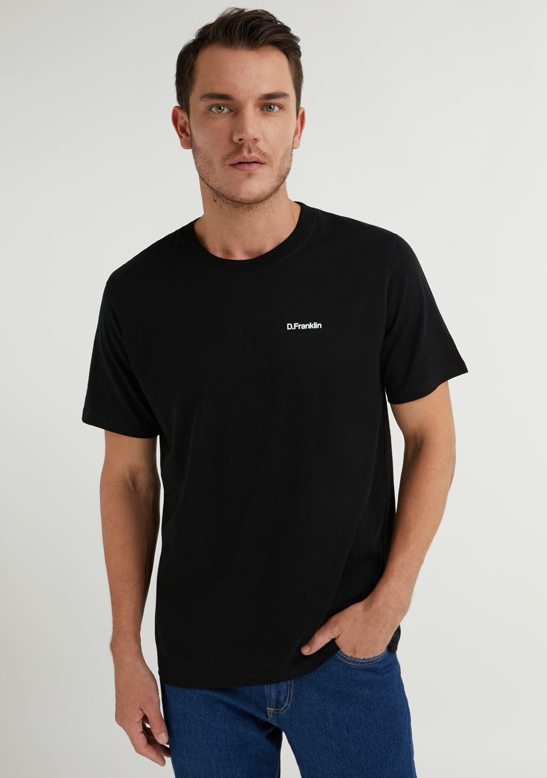 L'essence du style minimaliste se reflète dans un T-shirt noir. La polyvalence, l'élégance et la fonctionnalité dominent ce modèle iconique avec une âme D.Franklin.