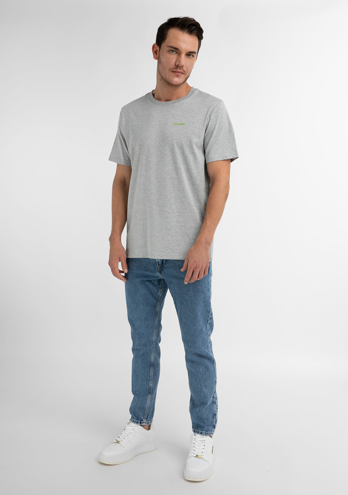 Conçu avec les meilleurs matériaux pour une qualité exceptionnelle. Le vêtement présente une écriture verte sur le côté gauche qui contraste avec la teinte du T-shirt. Le col côtelé est doublement piqué, tout comme les poignets et l'ourlet, qui présentent également une large couture.