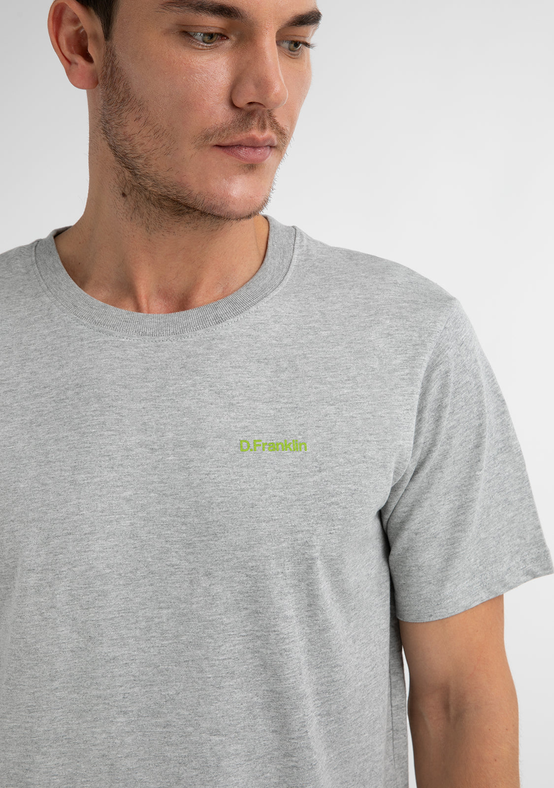 L'essence du style minimaliste reflétée dans un T-shirt gris. La polyvalence, l'élégance et la fonctionnalité dominent ce modèle emblématique avec une âme D.Franklin.