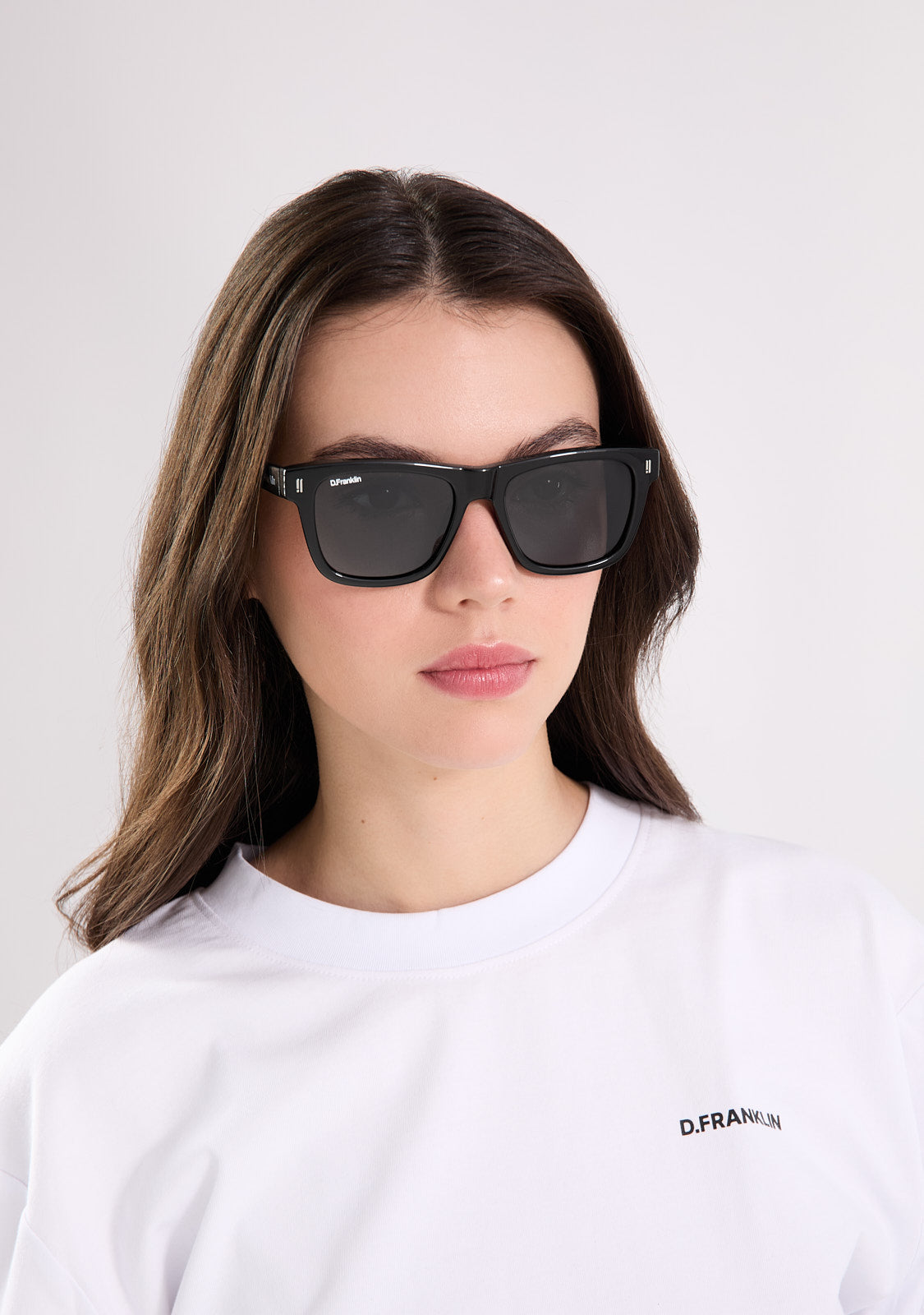 Les Boyd Black / Black de D.Franklin trouvent le juste équilibre entre design moderne et fonctionnalité. Ces lunettes de soleil, dotées d'une monture et d'un pont en TR90, sont ultra-légères et durables, tandis que les branches en acétate offrent un confort supplémentaire et une durabilité prolongée.
