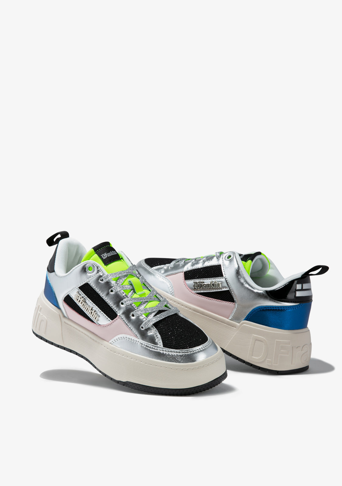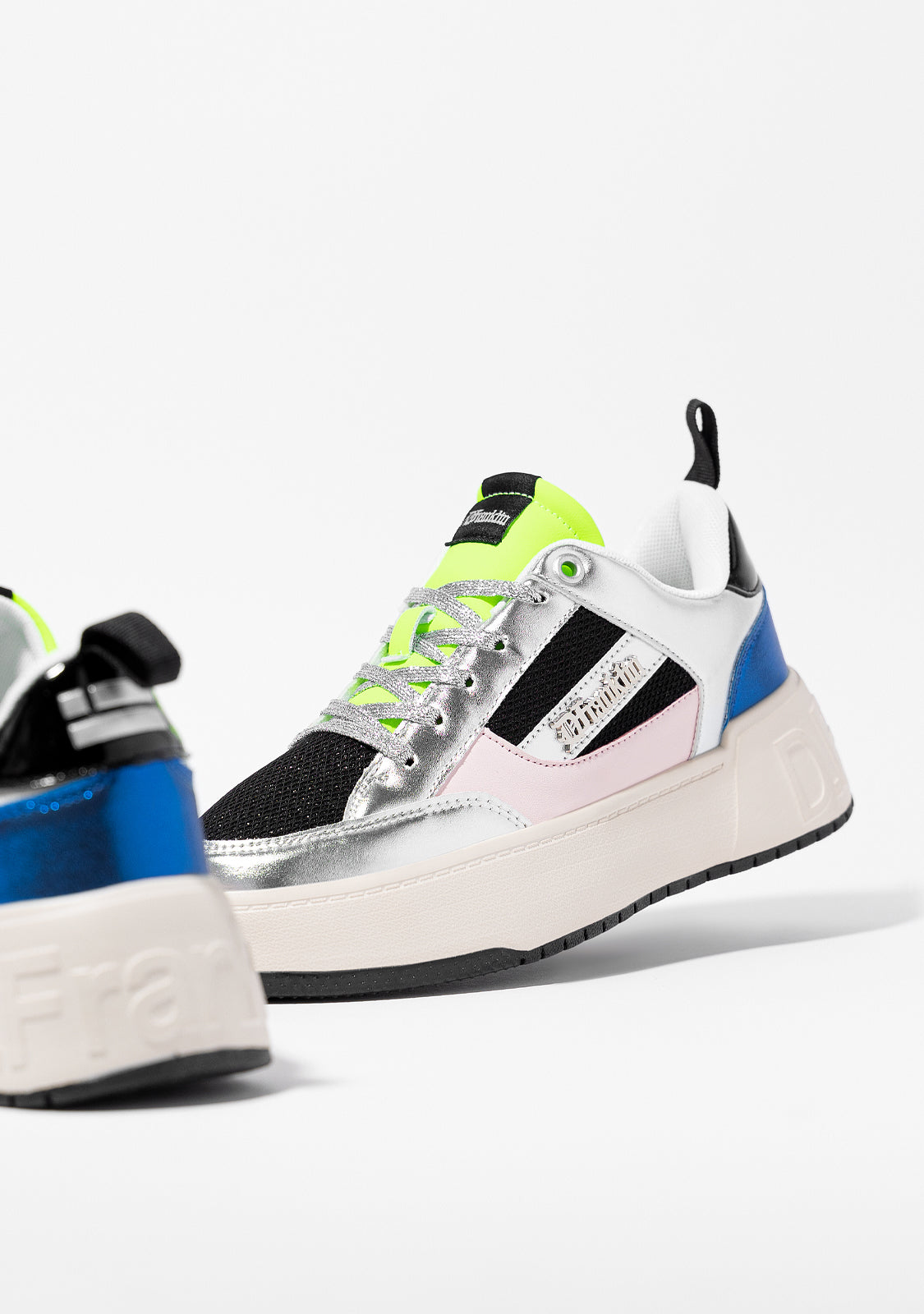 Le modèle Court D.Franklin est fabriqué avec des teintes néon et des détails brillants. Ils ont une semelle avec le logo embossé sur le talon, la semelle et le côté. Avec 4 cm de hauteur et une semelle en phylon pour un amorti léger. La semelle anatomique est également amovible.