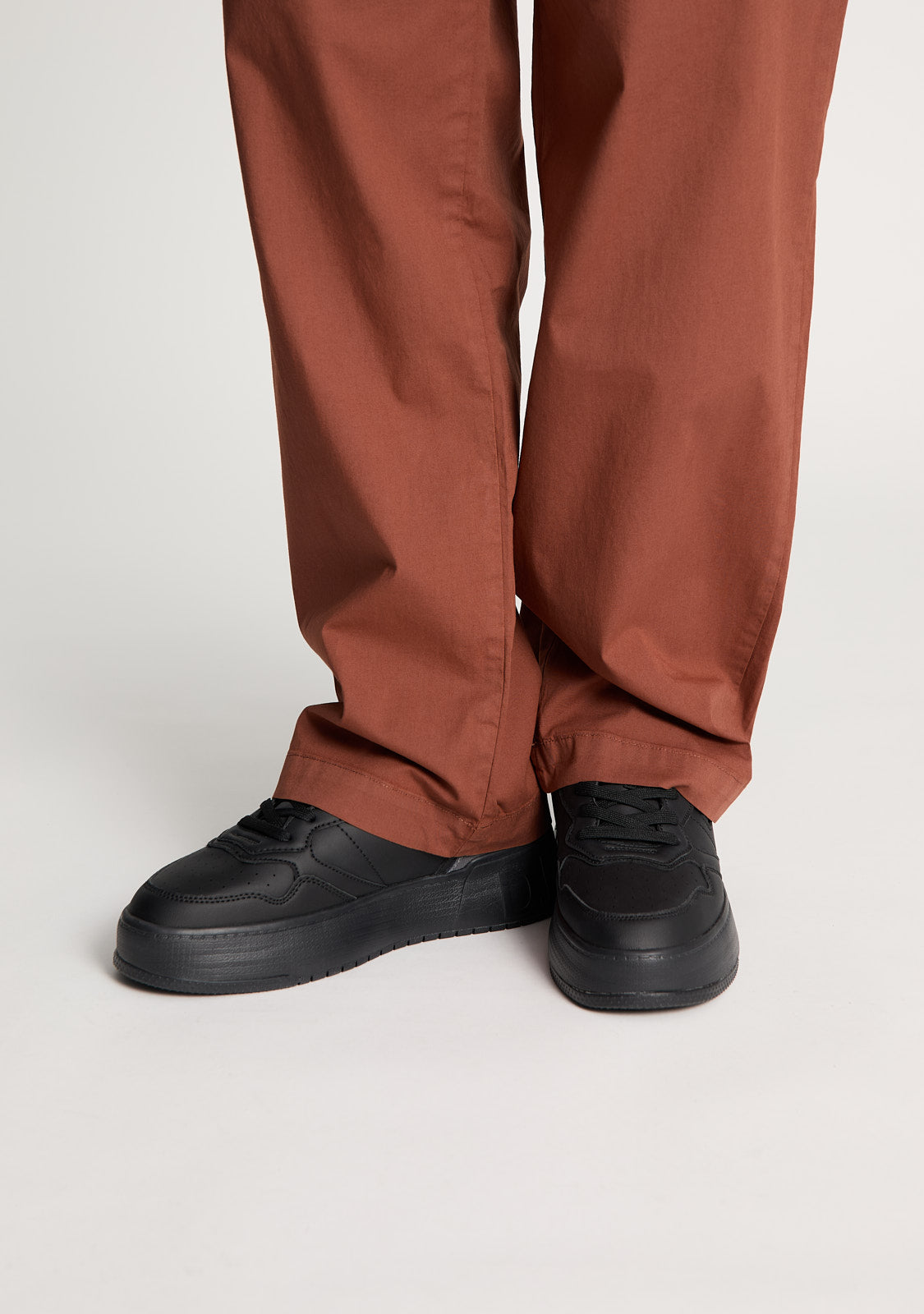 Des baskets minimalistes avec une inspiration sportive. Le design emblématique de notre iconographie transcende le terrain et envahit les rues. Connectez votre esthétique D.Franklin avec un emblème à coupe rétro et des détails simples.