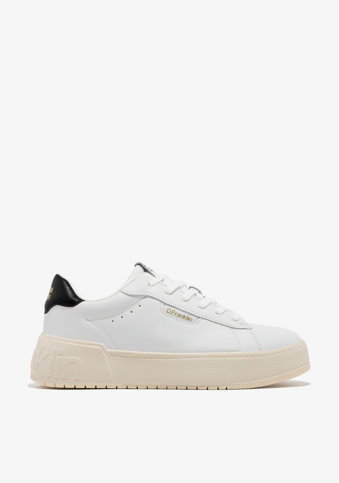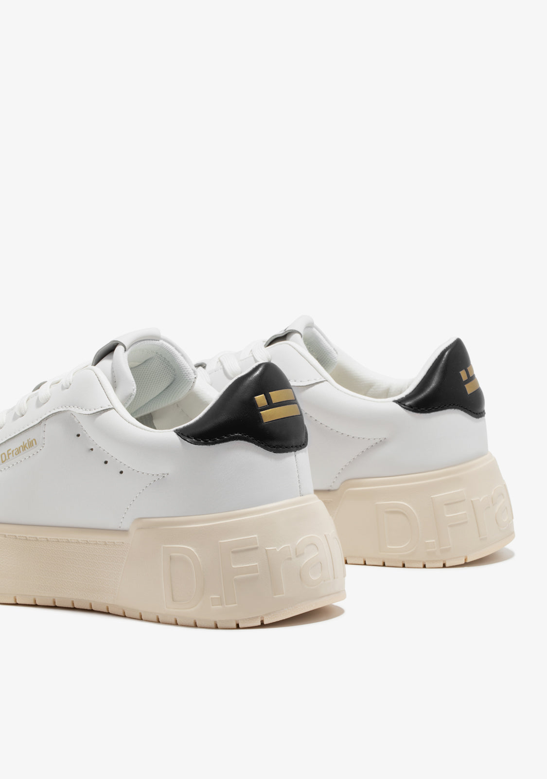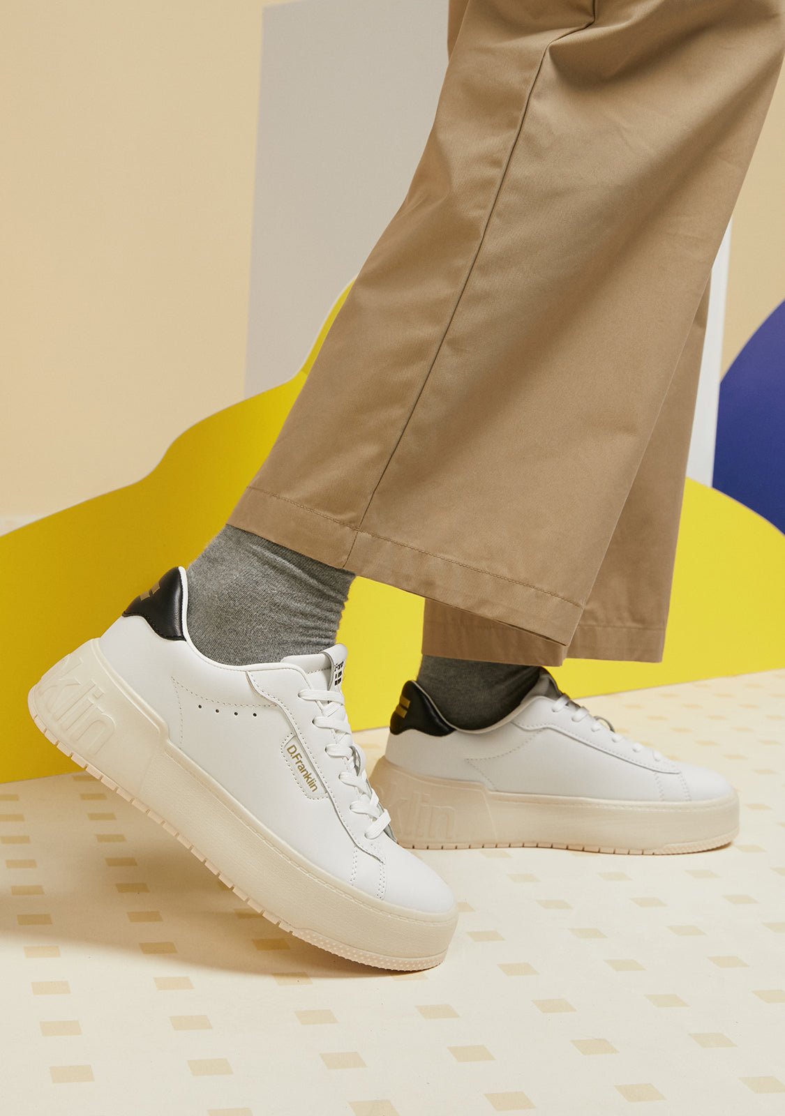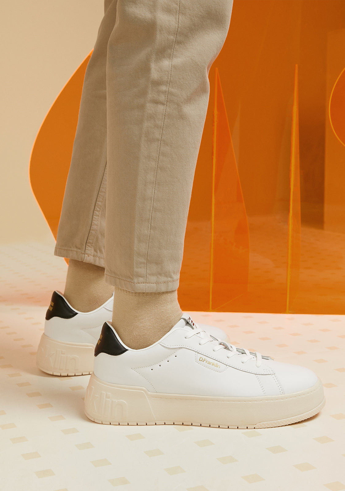 Des baskets minimalistes avec une inspiration sportive. Le design iconique de notre iconographie transcende le terrain et envahit les rues. Connectez votre esthétique D.Franklin avec un emblème à coupe rétro et des détails simples.