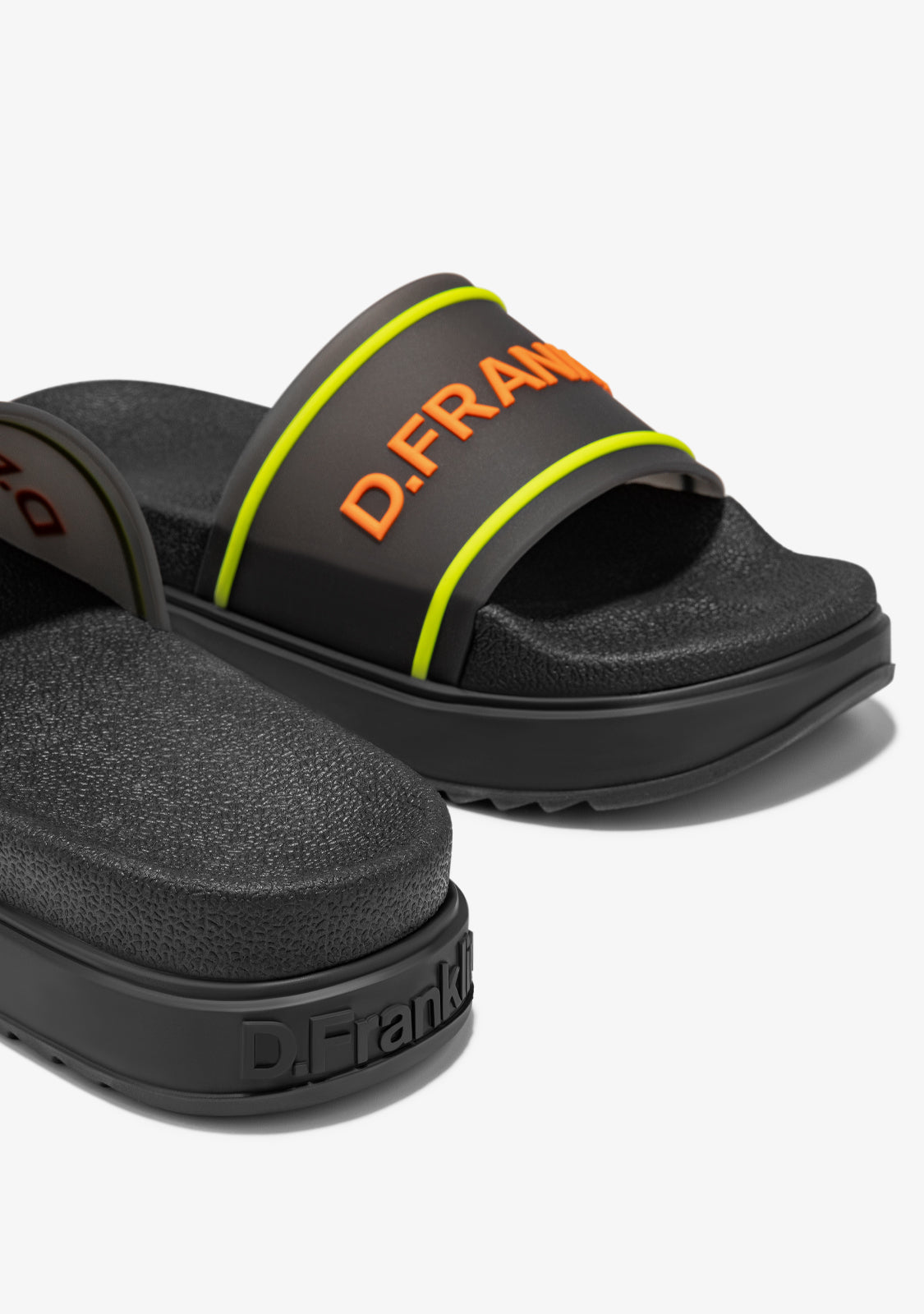 Le modèle DANA de D.Franklin dispose d'une large sangle synthétique de ton foncé qui assure un bon maintien. Il présente également notre emblème D.Franklin sur le dessus avec des détails orange et vert. La conception de la semelle est moulée pour épouser parfaitement la forme du pied.