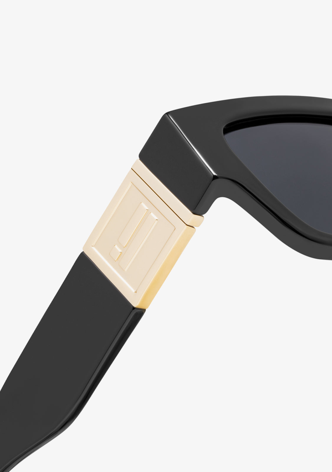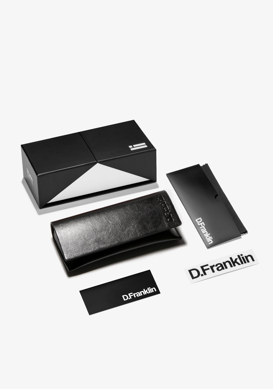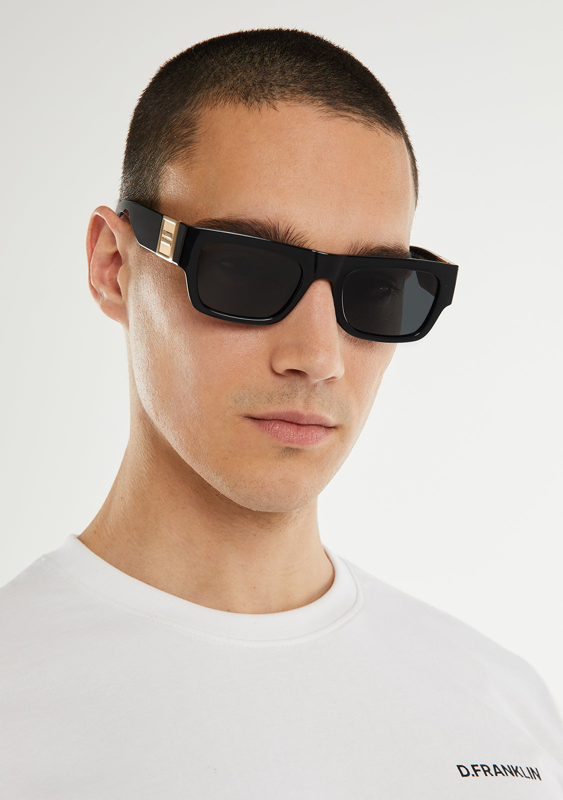 Des verres polarisés fumés et une monture sombre rehaussent l'esthétique de ce design. Il présente notre drapeau D.Franklin emblématique avec une finition dorée métallique sur les deux branches. Avec une largeur de verre de 52 mm et une monture avant de 141 mm, ces lunettes flatteront la plupart des visages. Les branches latérales ont une longueur de 140 mm.