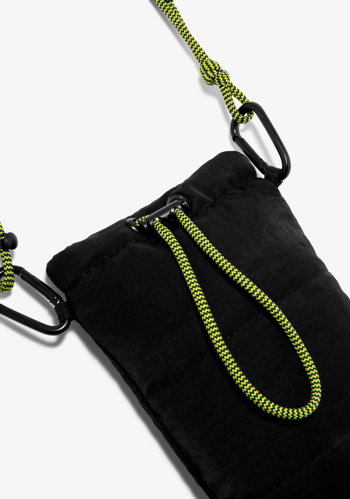 Ce modèle avec finition noire a un cordon amovible de couleur lime grâce à ses mousquetons qui permettent d'adapter sa longueur. Il dispose d'une fermeture réglable et d'un logo D.Franklin de couleur lime sérigraphié sur le devant.
