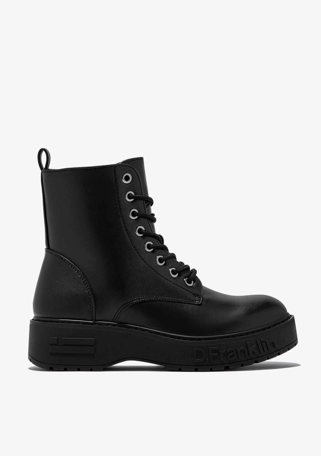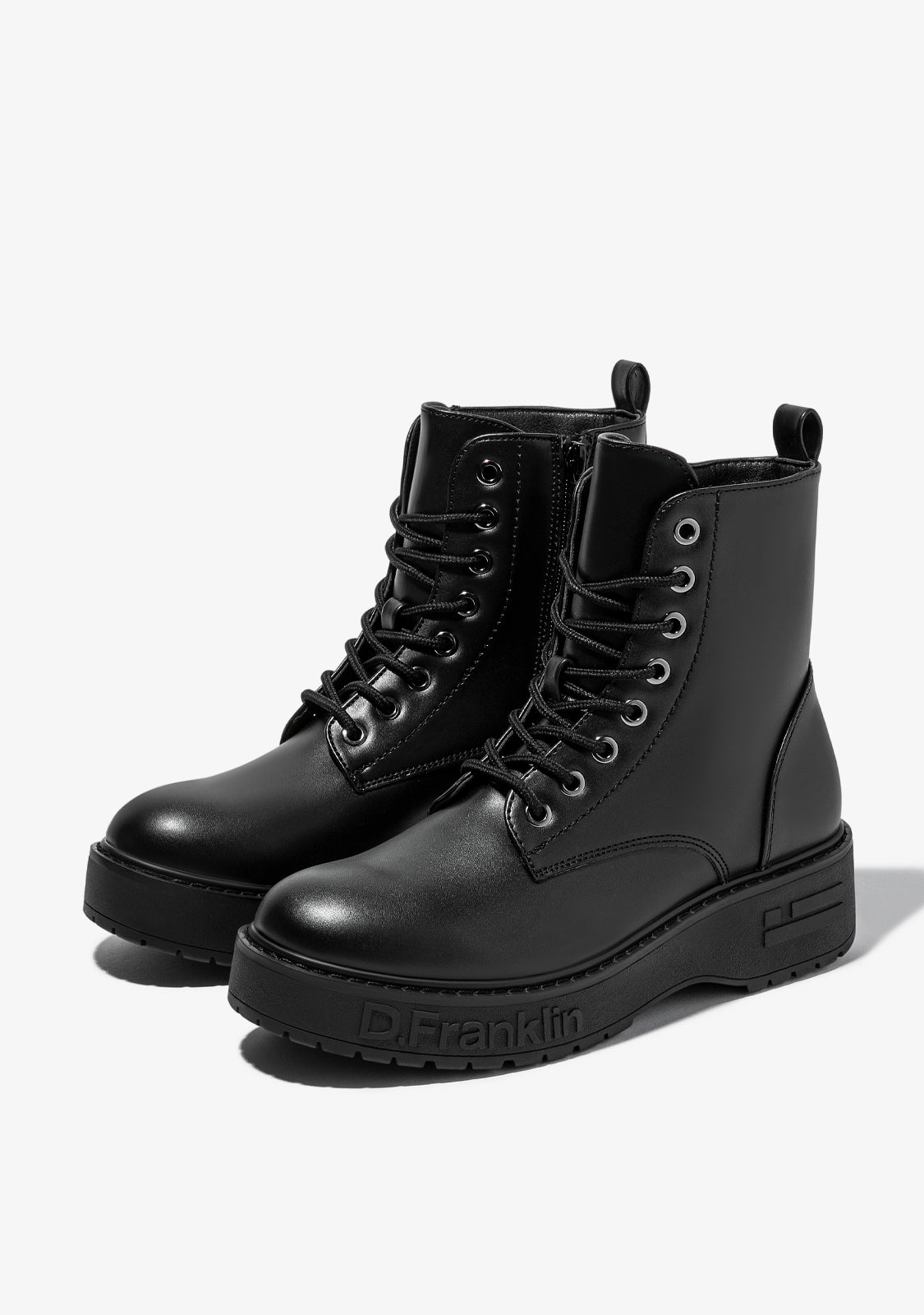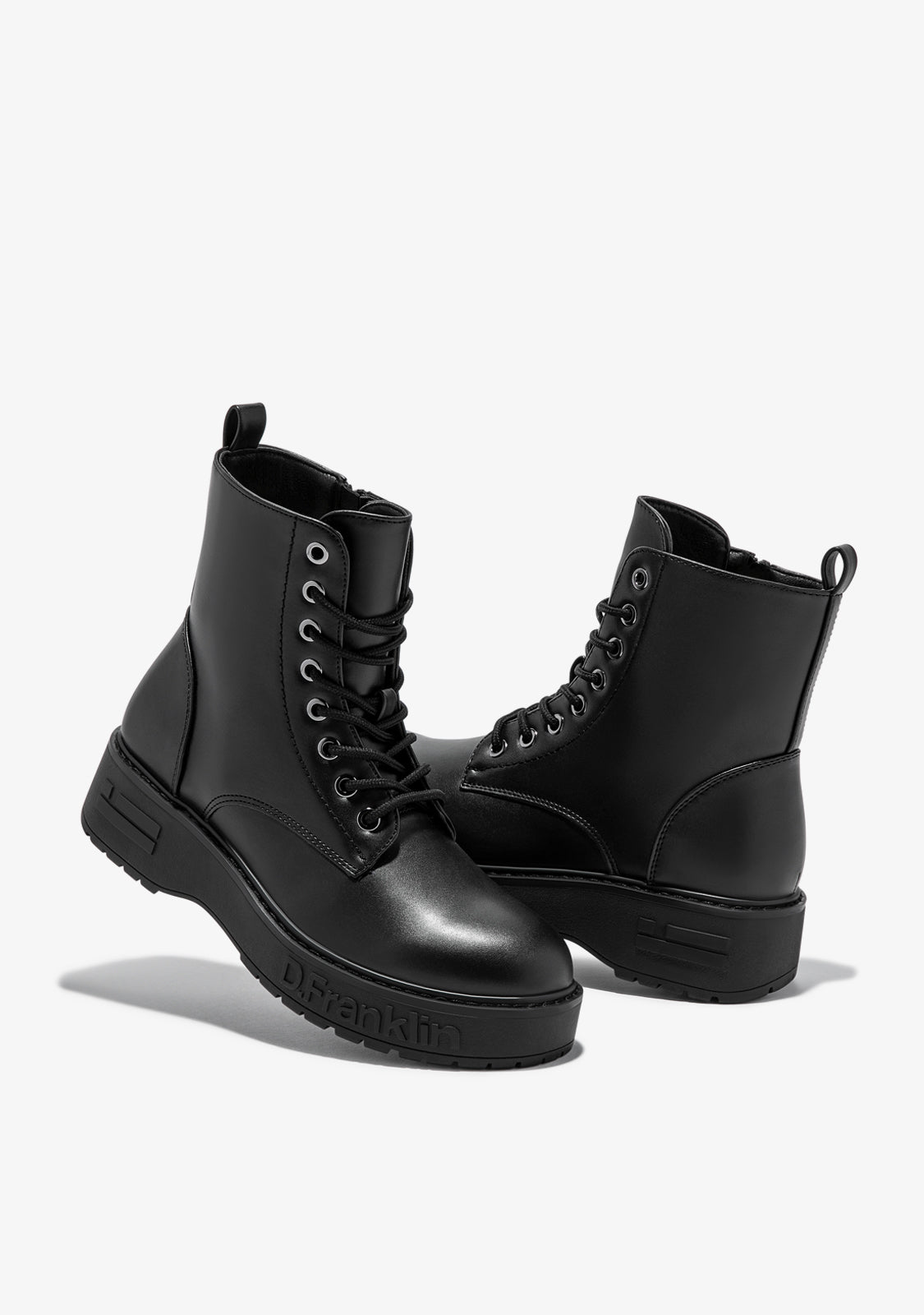 Ce modèle noir D.Franklin présente une fermeture éclair intérieure d'un côté et des lacets en coton ajustables. La semelle style piste offre une adhérence inégalée. Le logo embossé et la personnalisation de l'emblème sur le talon et le bout de la chaussure.
