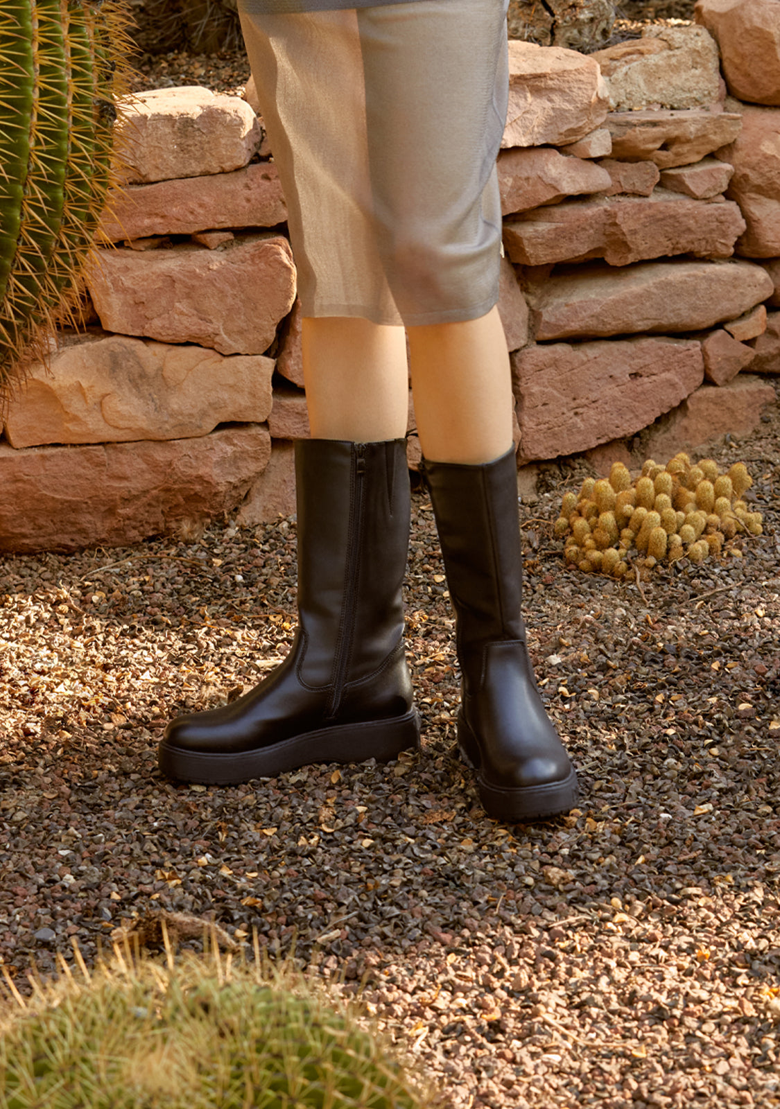 - Synthetic rubber stitched sole with 4cm platform
