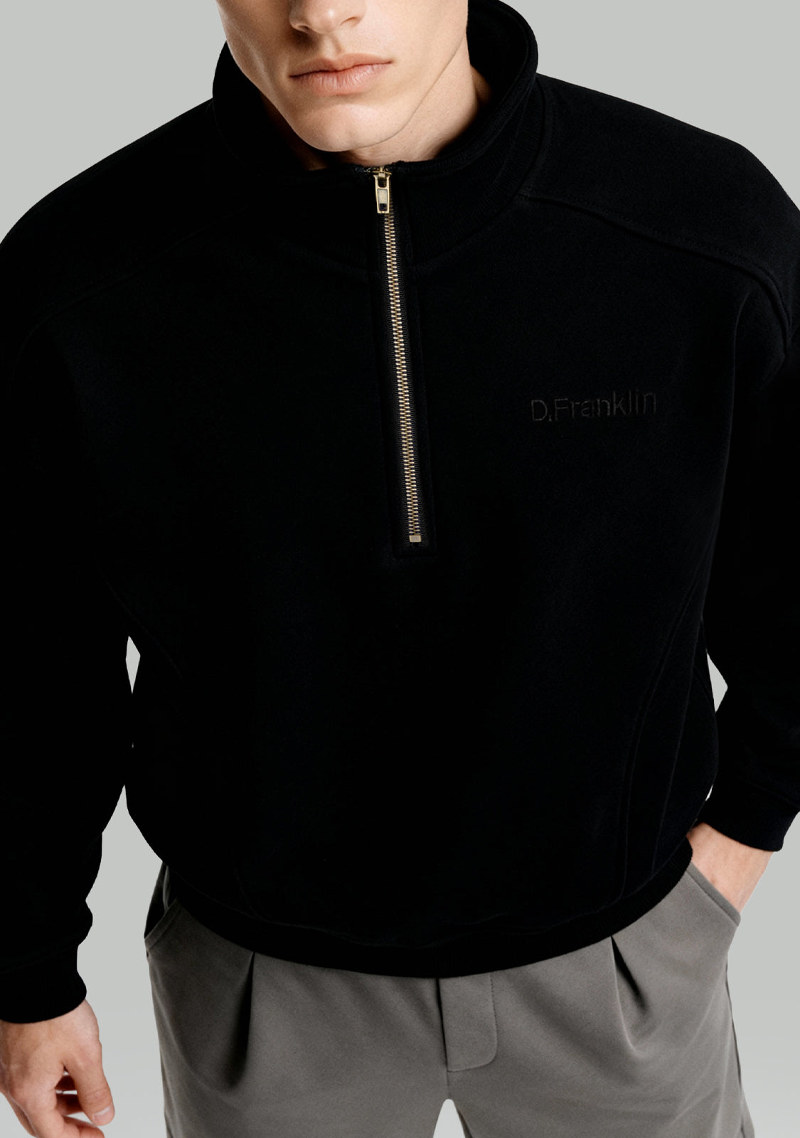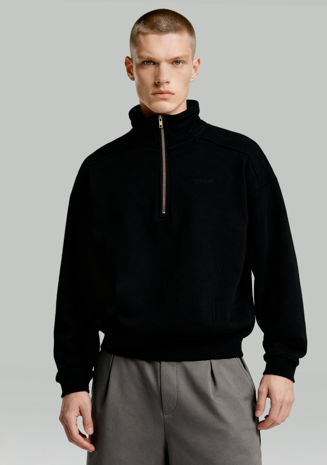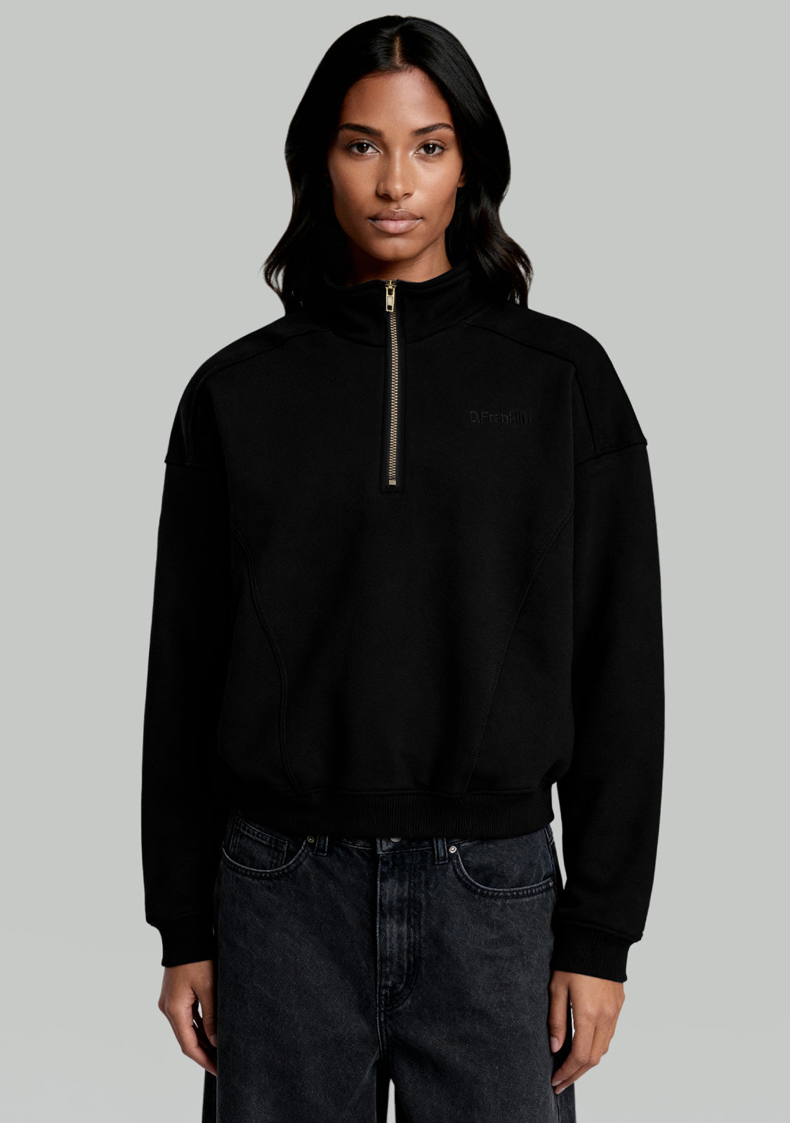 Half-Zip Sweatshirt Black est un sweatshirt unisexe qui allie confort et structure moderne. Le col demi-zip offre de la flexibilité, tandis que les coutures marquées cassent la simplicité pour un look plus dynamique.