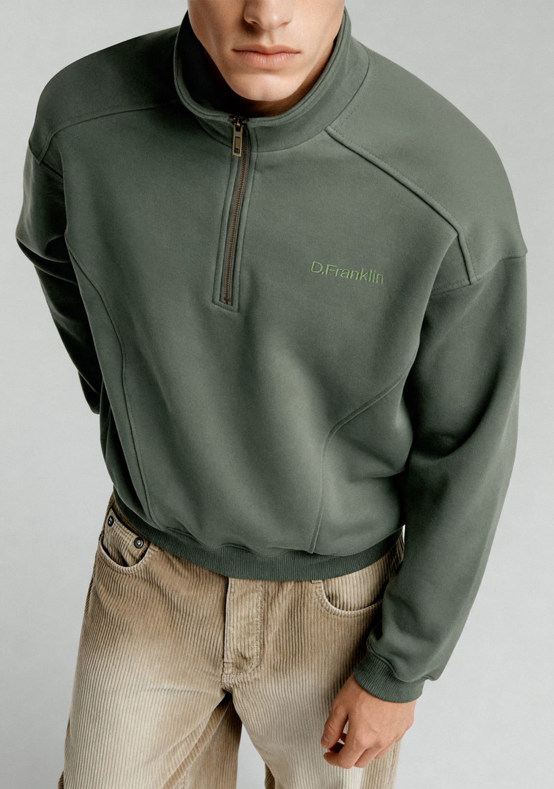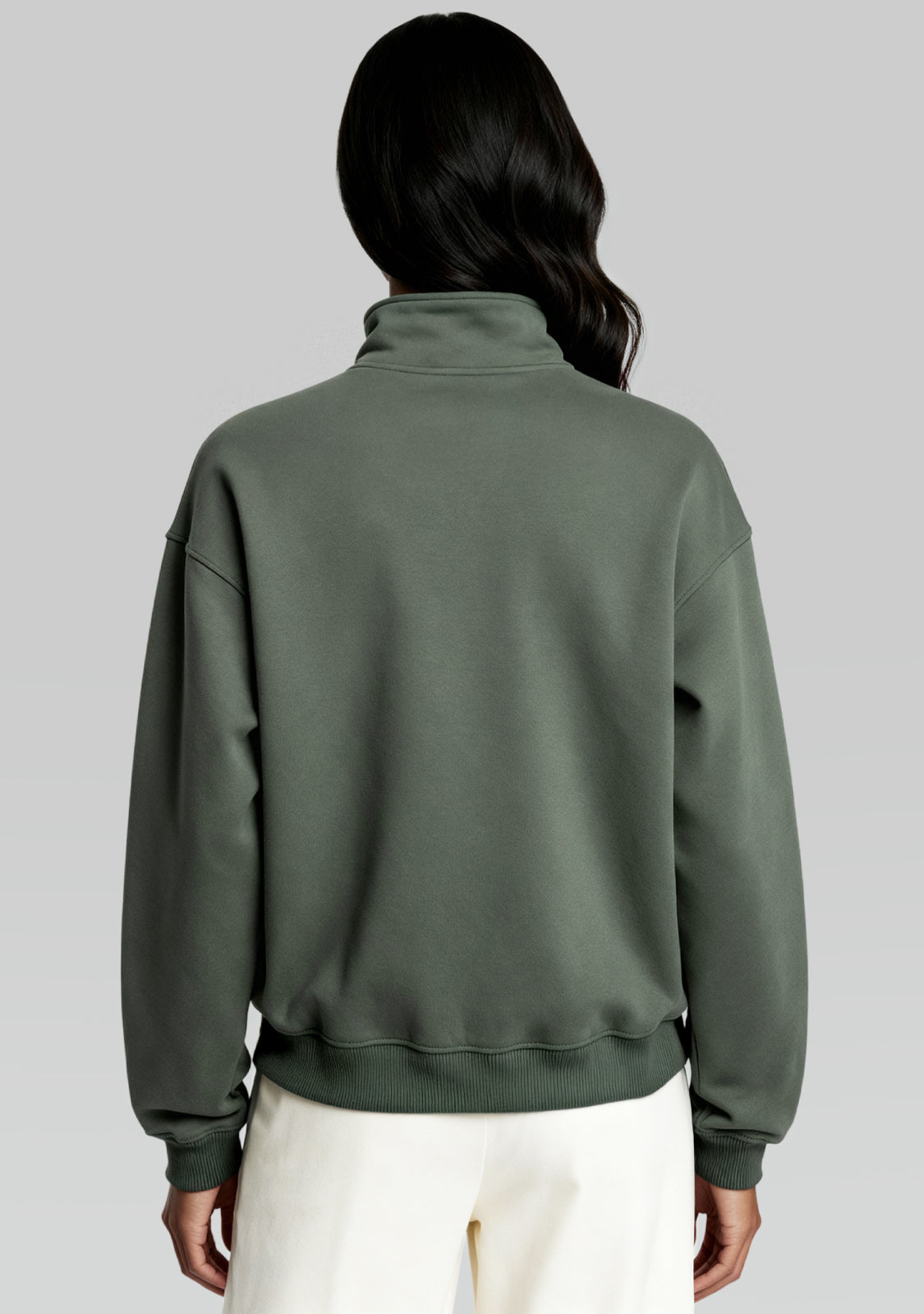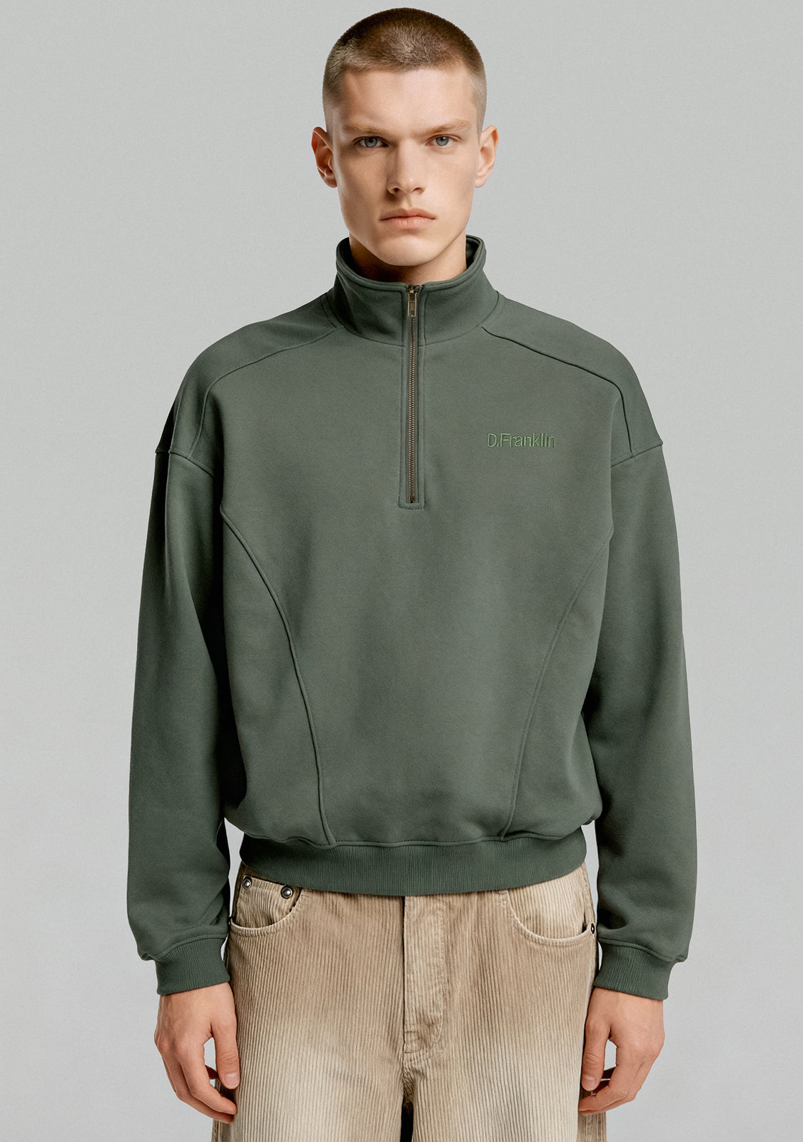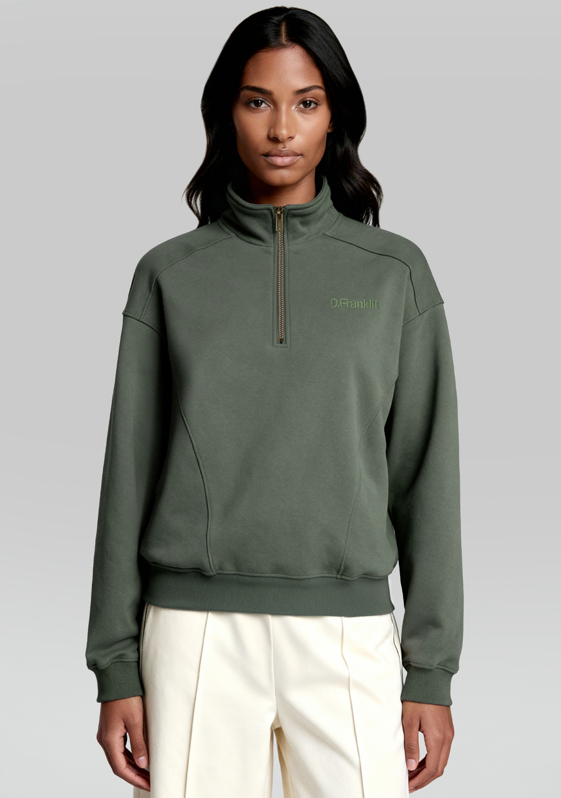 Half-Zip Sweatshirt Sage Green est un sweatshirt unisexe qui allie confort et structure moderne. Le col demi-zip offre de la flexibilité, tandis que les coutures marquées cassent la simplicité pour un look plus dynamique.
