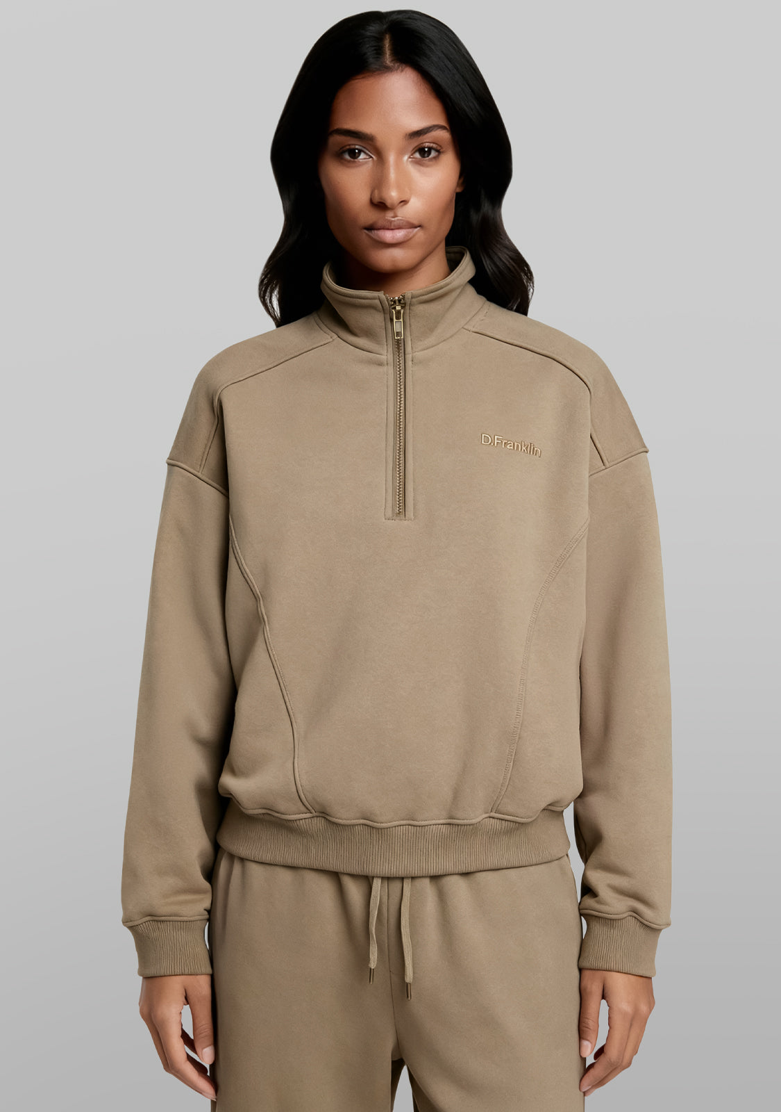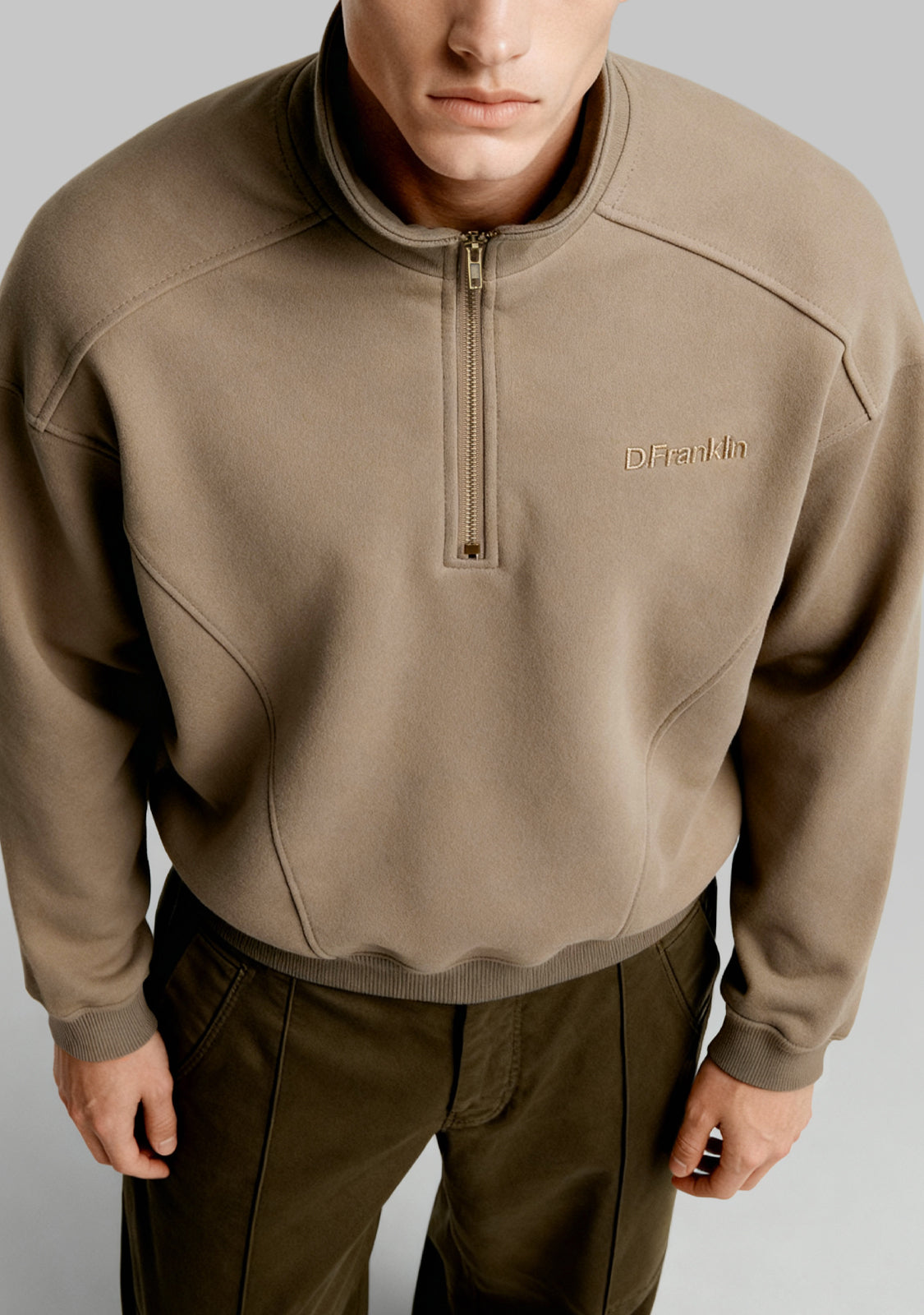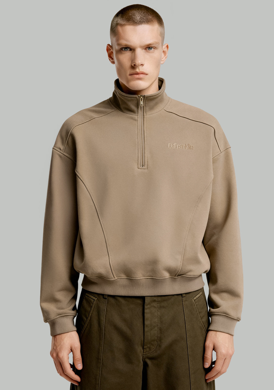 Half-Zip Sweatshirt Sand est un sweatshirt unisexe qui allie confort et structure moderne. Le col demi-zip offre de la flexibilité, tandis que les coutures marquées cassent la simplicité pour un look plus dynamique.
