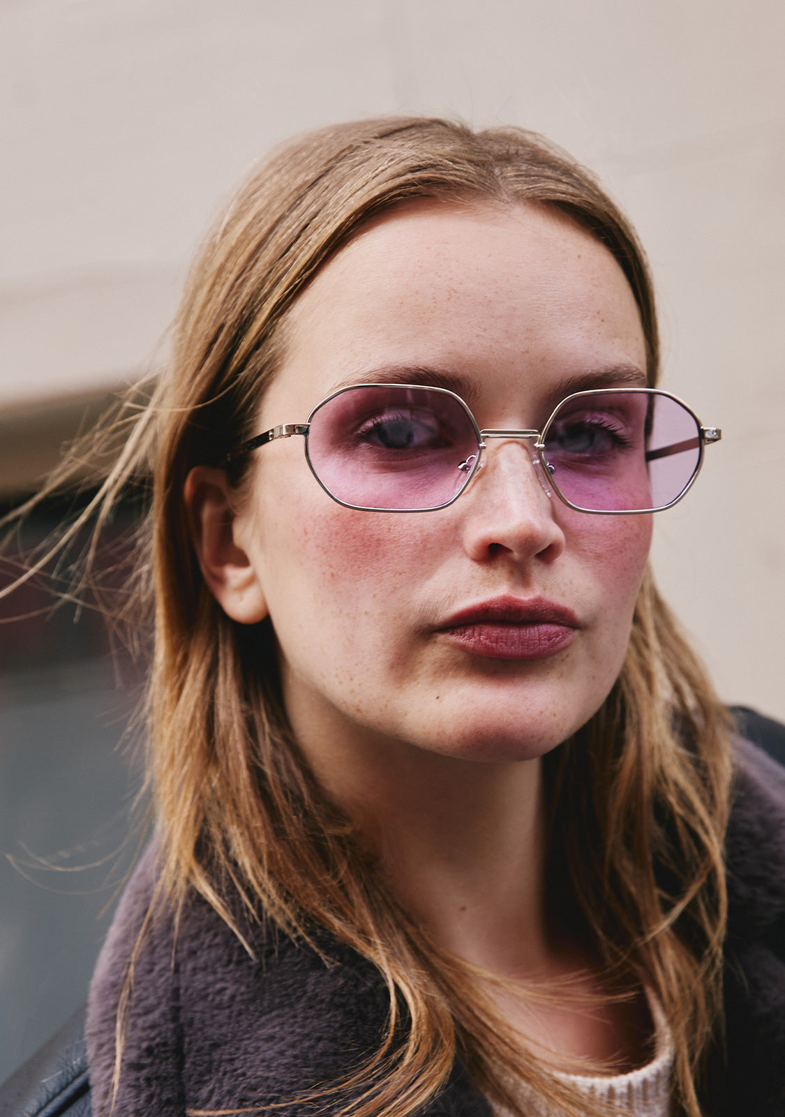 Le design Square Legacy présente une finition métallique avec une esthétique hexagonale. Sa monture argentée est associée à des verres anti-reflets lavande qui permettent une vue subtile et définissent les traits du visage. L'avant mesure 141 mm, et la largeur des verres est de 54 mm. Les branches mesurent 140 mm de long et intègrent nos détails distinctifs. Une pièce rétro mais minimaliste pour encadrer n'importe quelle tenue.
