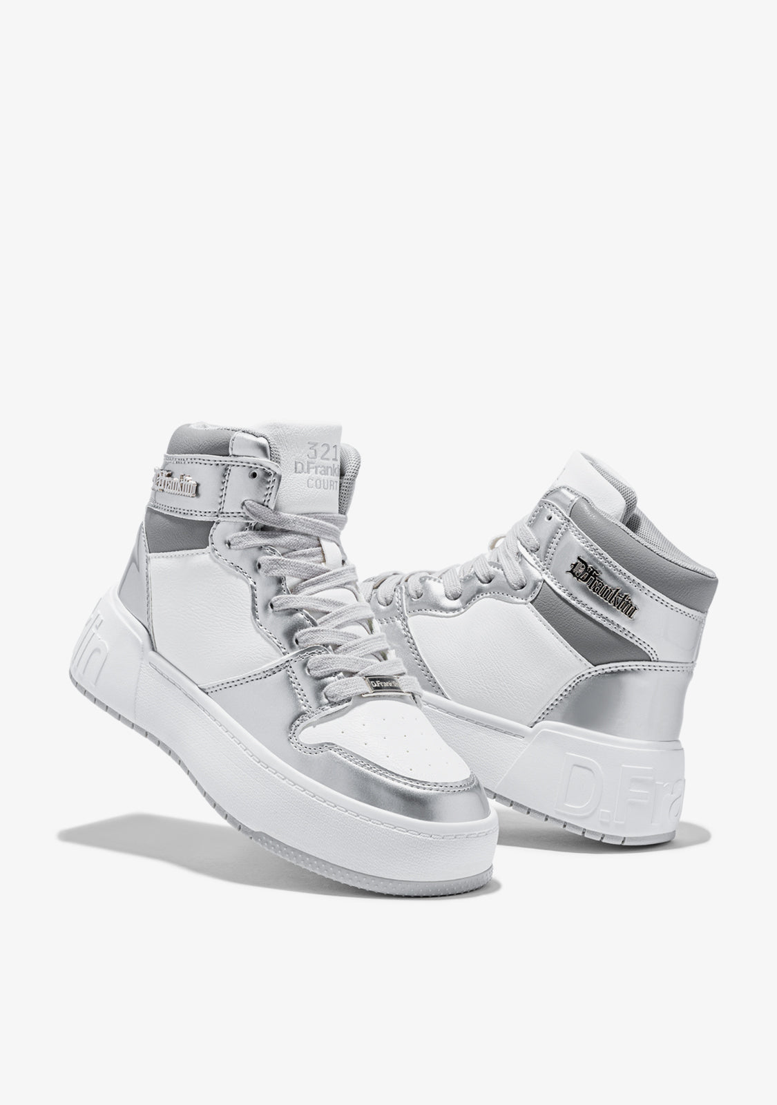 Présentation de la collection Court de D.Franklin. Un nouveau modèle inspiré du sport, créé sur le terrain pour offrir un design audacieux et polyvalent. Maintenant, avec un design hi-top, le High Court White / Silver se caractérise par une réinterprétation de la ligne classique des couches, avec une combinaison de blanc et d'argent.