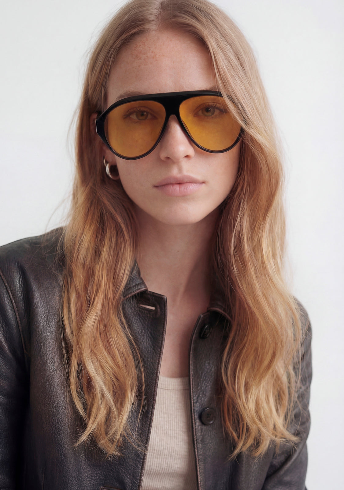 Icon Crystal Black / Amber Les lunettes de soleil présentent une silhouette audacieuse et oversize aux lignes doucement géométriques, offrant un équilibre parfait entre style affirmé et élégance raffinée. La monture translucide brun cristal associée à des verres brun chaud crée une finition soignée et facile à porter qui sublime les looks du quotidien.