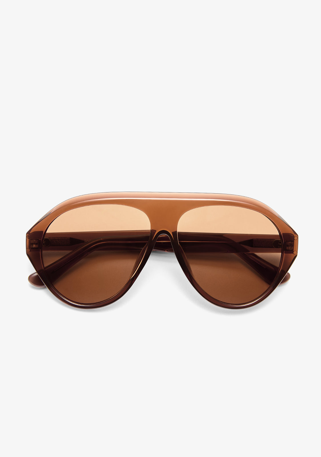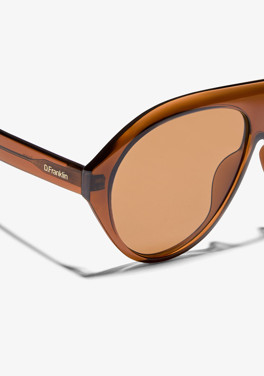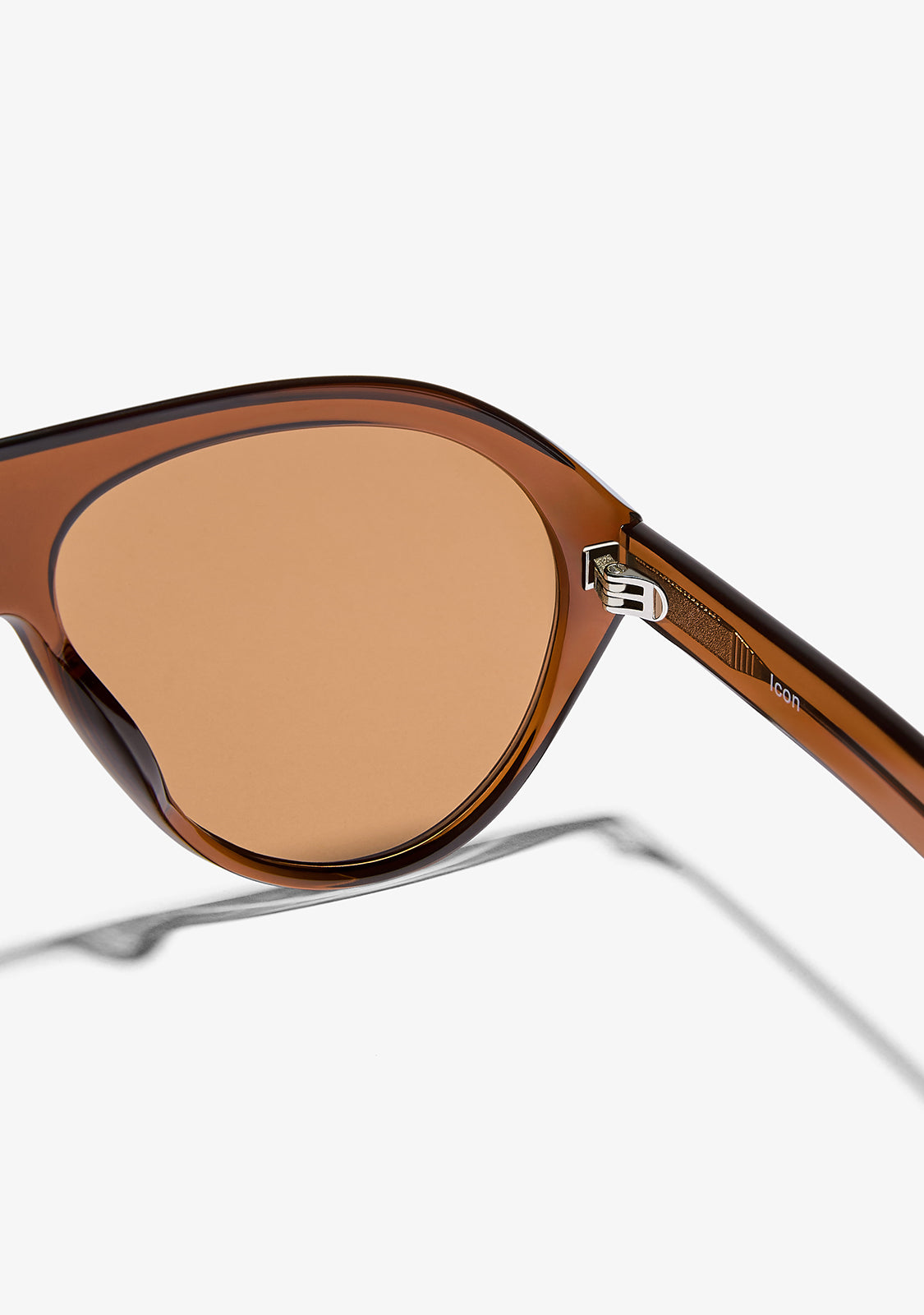 Icon Crystal Black / Amber présentent une silhouette audacieuse et oversize aux lignes doucement géométriques, offrant l’équilibre parfait entre style affirmé et élégance raffinée. La monture translucide brun cristal associée à des verres brun chaud crée une finition soignée et facile à porter qui sublime les looks du quotidien.