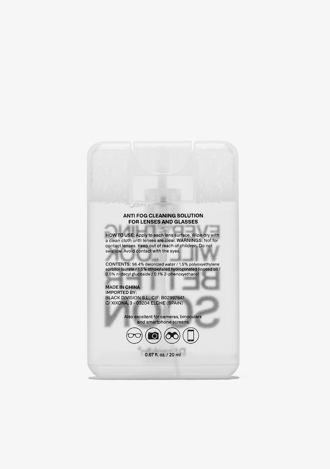 Solution de nettoyage anti-buée pour lentilles et lunettes.