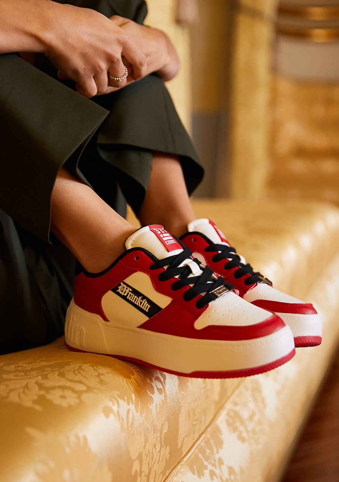 Présentation de la collection 321 Court de D.Franklin. Un nouveau modèle inspiré du sport, créé pour offrir un design audacieux et polyvalent. Le Low Court Red se caractérise par une réinterprétation de la ligne classique des couches, avec une combinaison de couleurs révolutionnaire.