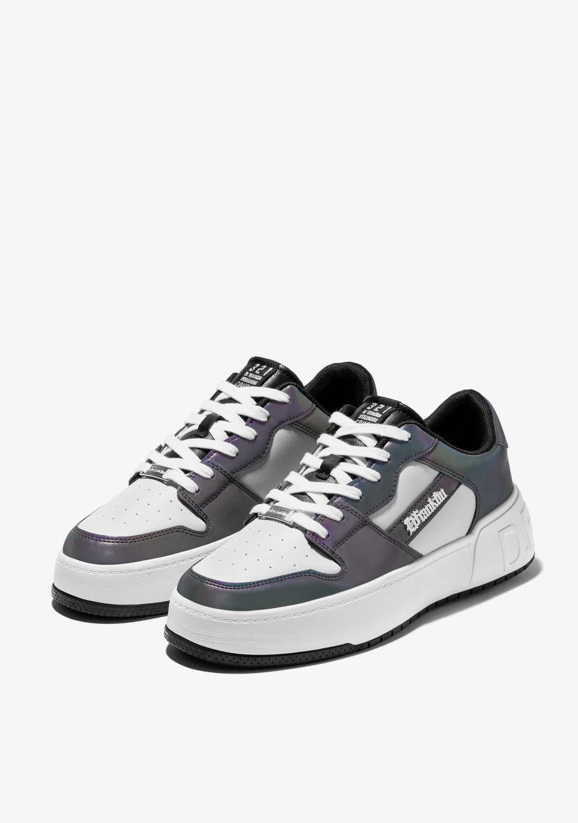 Présentation de la collection Court de D.Franklin. Un nouveau modèle inspiré du sport, créé sur le terrain pour offrir un design audacieux et polyvalent. Le Low Court White /Reflective se caractérise par une réinterprétation de la ligne classique des couches.