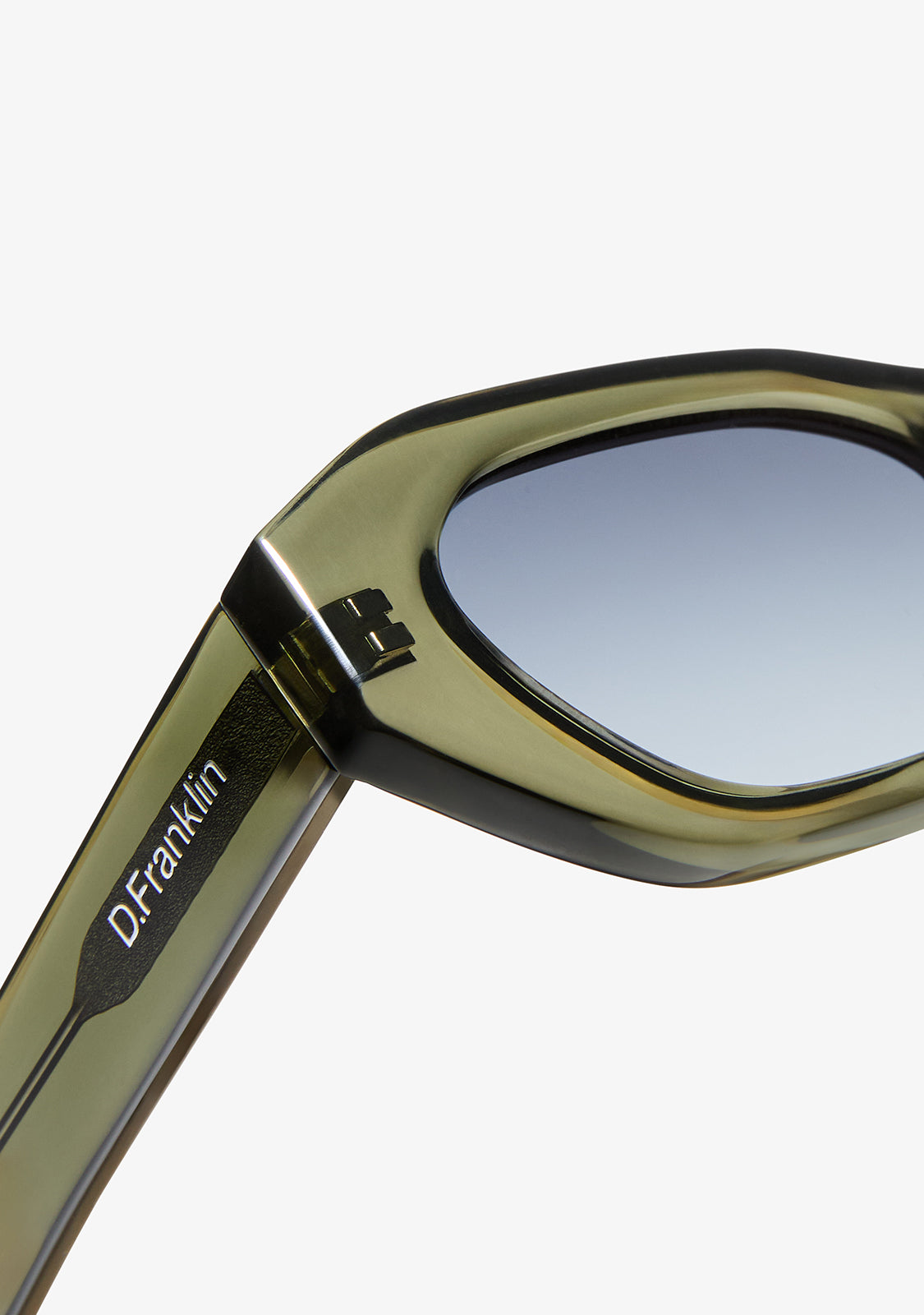 Découvrez le Meike Vert Foncé / Fumée Dégradée — une silhouette inspirée des vintage finie avec des détails emblématiques D.Franklin, y compris le logo gravé sur les branches et l'emblème sur la lentille. Conçu avec une largeur de lentille de 51 mm et un devant de 141,3 mm, il offre un ajustement équilibré, complété par des branches de 140 mm et un pont de 20,5 mm.