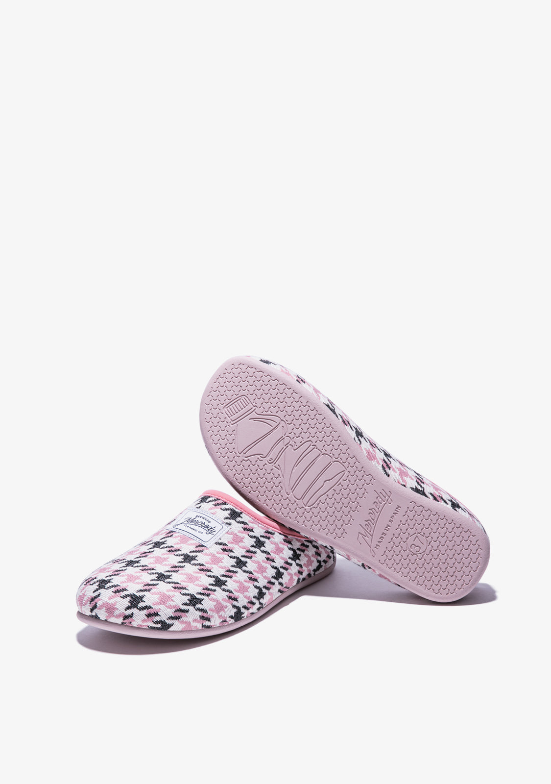 Le confort durable est là. La nouvelle collection Slipper de Mercredy arrive pour créer des chaussures pour la maison conçues à partir de matériaux recyclés. Elles sont fabriquées en tissu léger et confortable, avec une semelle en fibre textile respirante, ainsi qu'une semelle en caoutchouc antidérapante. Les Mercredy Slipper Houndstooth Noir / Rose sont conçues avec un imprimé pied-de-poule.