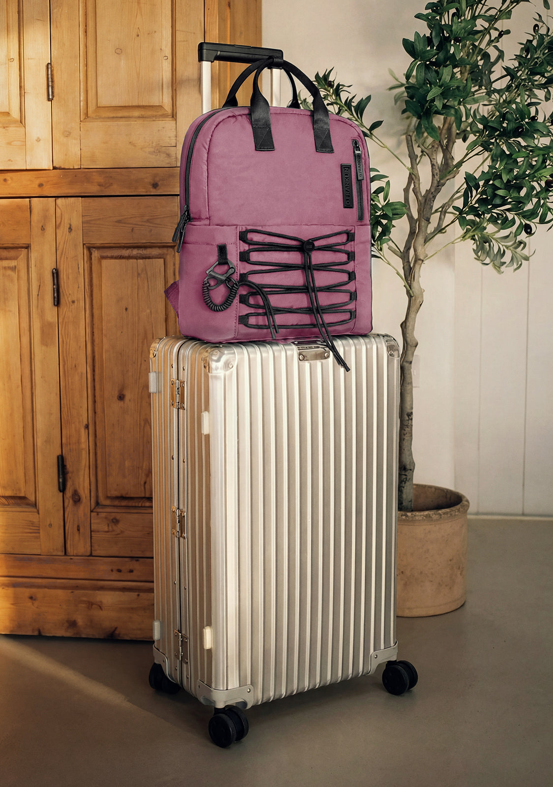Ce modèle avec une finition rose est fabriqué avec des matériaux techniques qui offrent légèreté et résistance. Son intérieur comprend une poche rembourrée pour ordinateurs portables jusqu'à 14 pouces, ainsi que deux petits compartiments organisateurs. Il dispose également d'une sangle intérieure à partir de laquelle vous pouvez accrocher votre porte-clés avec mousqueton situé à l'avant.