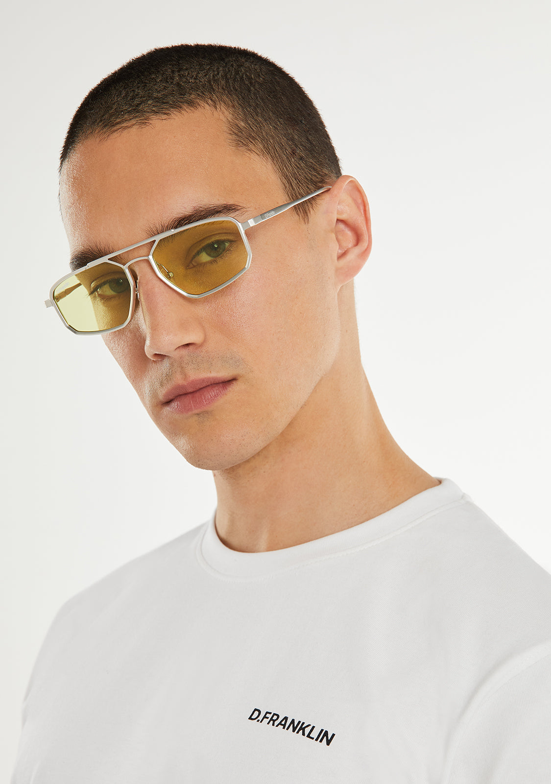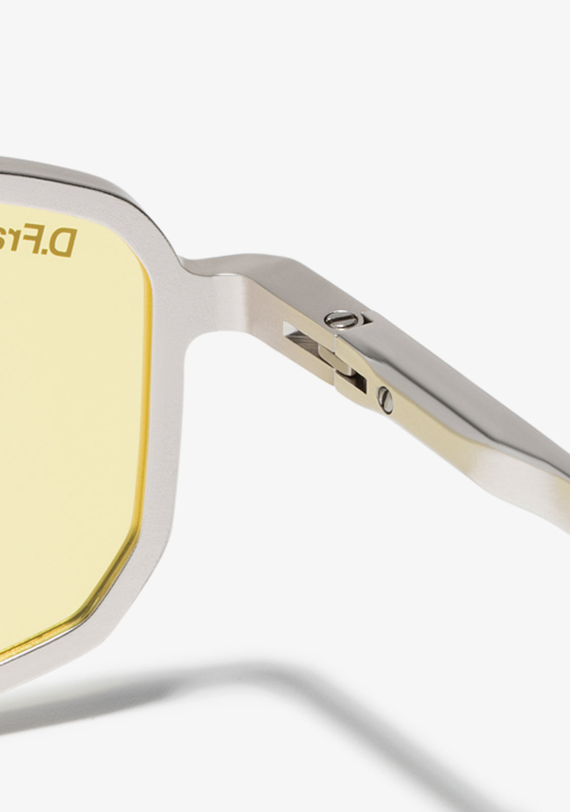 Grâce à leur construction en aluminium, ces lunettes sont ultra-légères. Elles disposent de verres polarisés jaunes et d'un cadre argenté qui renforce son esthétique signature. Le design présente notre emblème sur le verre droit et un logo métallique sur le côté des branches. Le cadre avant mesure 143 mm et la largeur des verres est de 52 mm, ce qui convient à la plupart des visages. Les branches mesurent 138 mm de long.