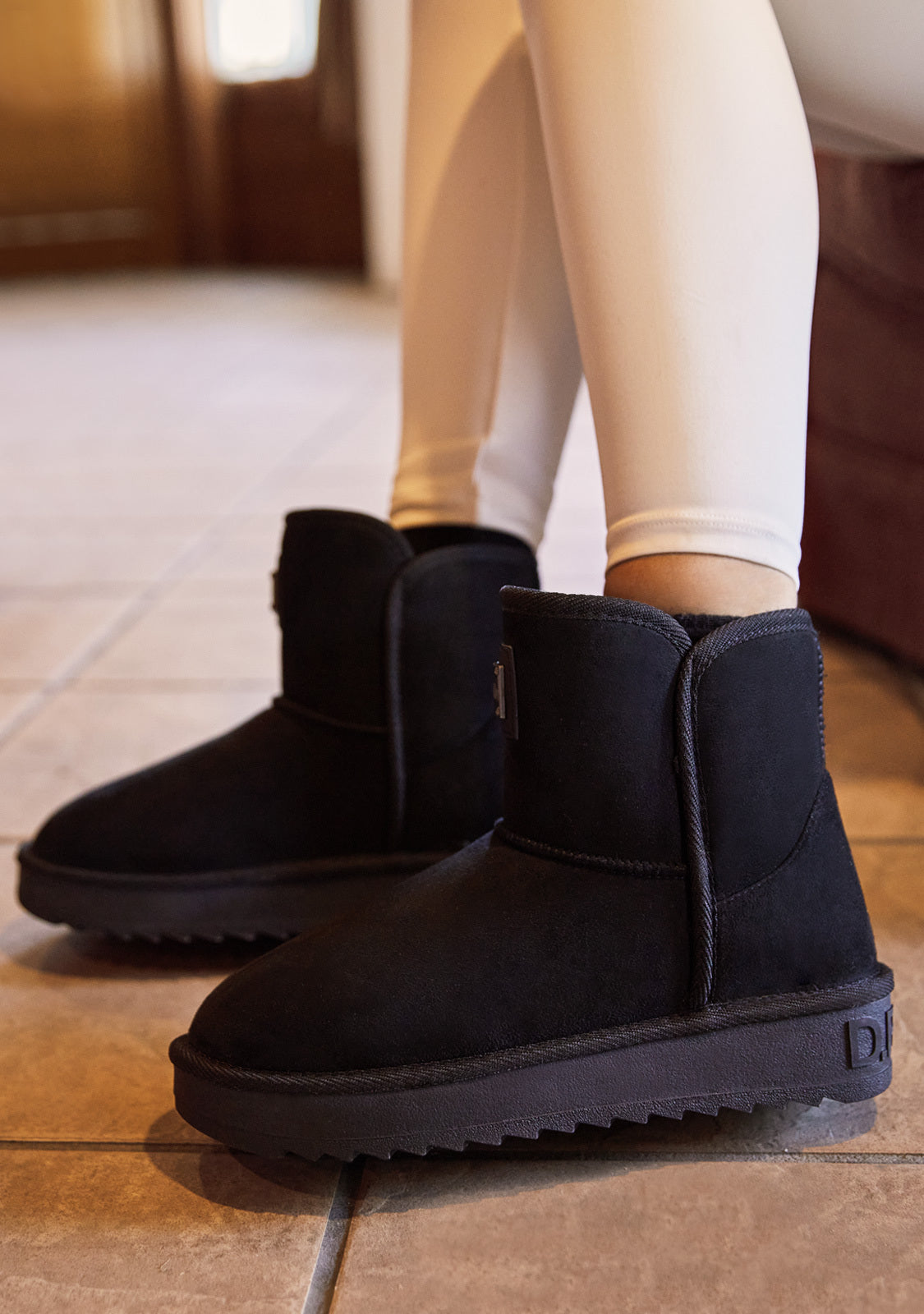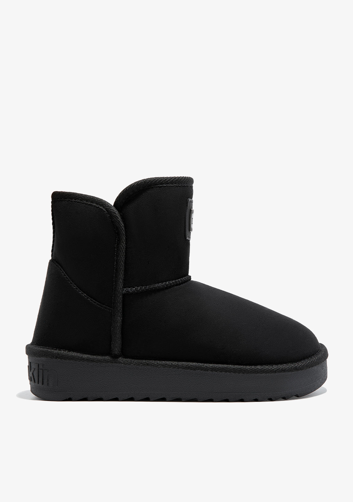Ces bottes noires à tige basse sont fabriquées en tissu microfibre de haute qualité résistant à l'eau. La semelle redessinée offre un poids plus léger pour un confort accru. Elle dispose également de notre insigne de talon personnalisé et d'une semelle contrastante. De plus, sa doublure en fourrure synthétique lui donne la touche ultime de l'hiver.