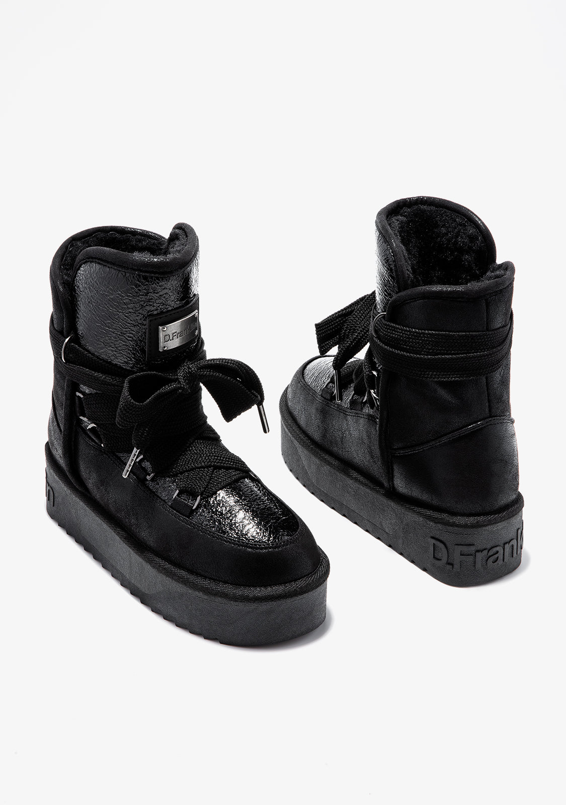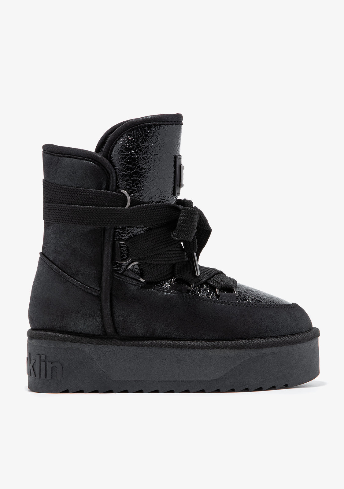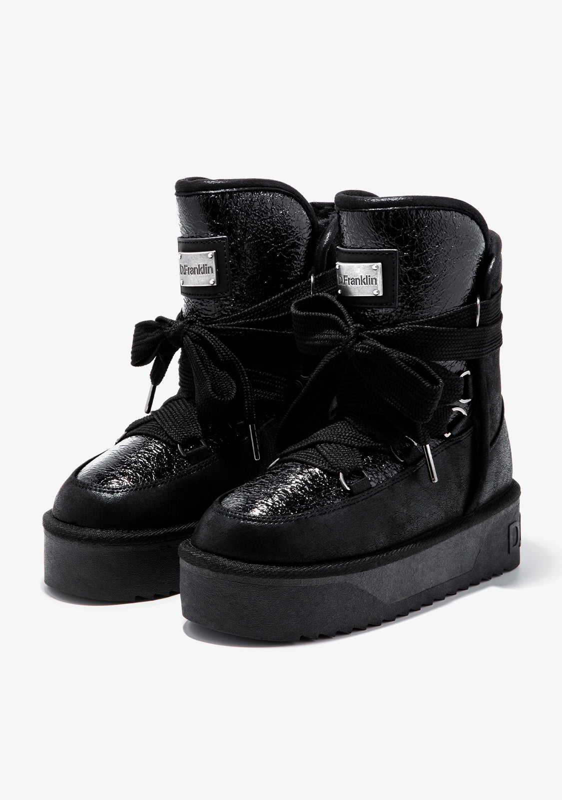 Collection de bottes nordiques australiennes. La brise glaciale et l'éclat des jours enneigés fusionnent dans un design aux finitions brillantes. Une pièce qui respire l'essence de l'après-ski avec notre tampon signature D.Franklin.