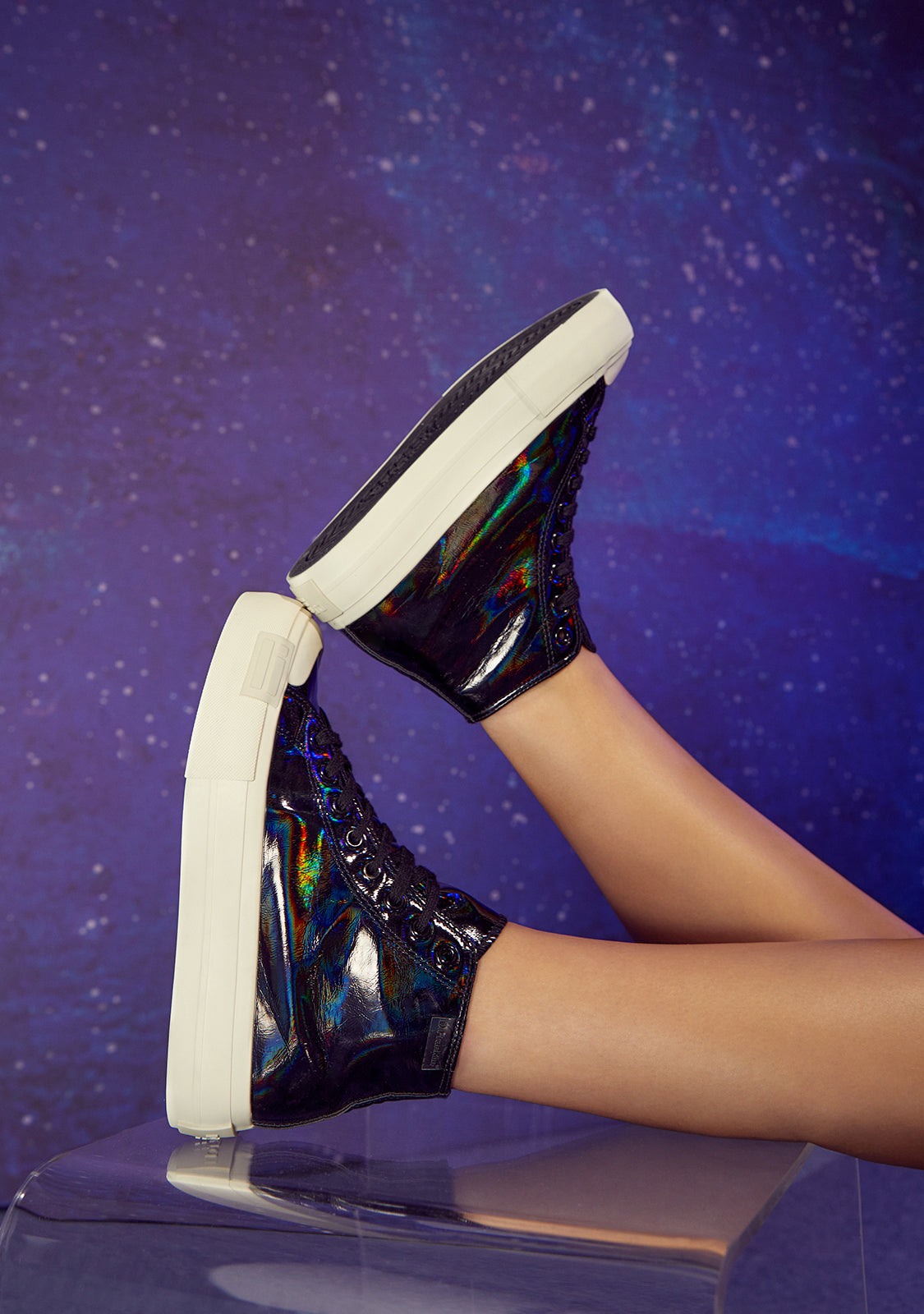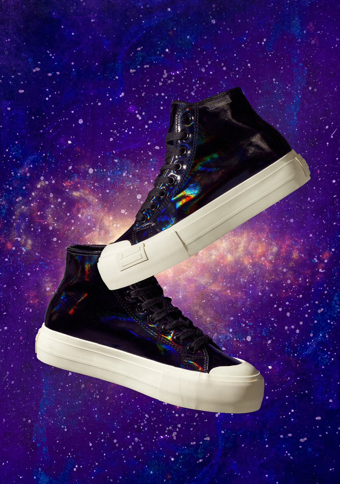 Baskets montantes unicolores D.Franklin. Sneakers avec effet irisé. Un rappel que vous pouvez suivre la tendance de manière unique.