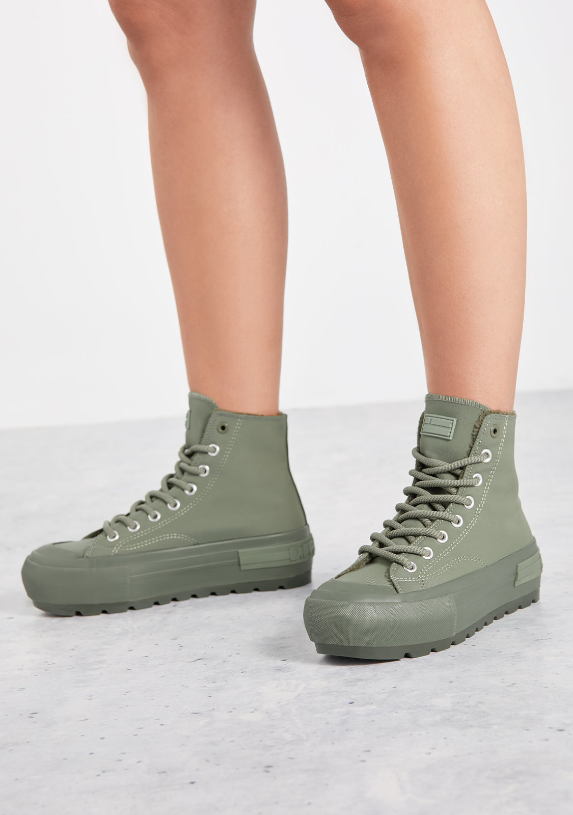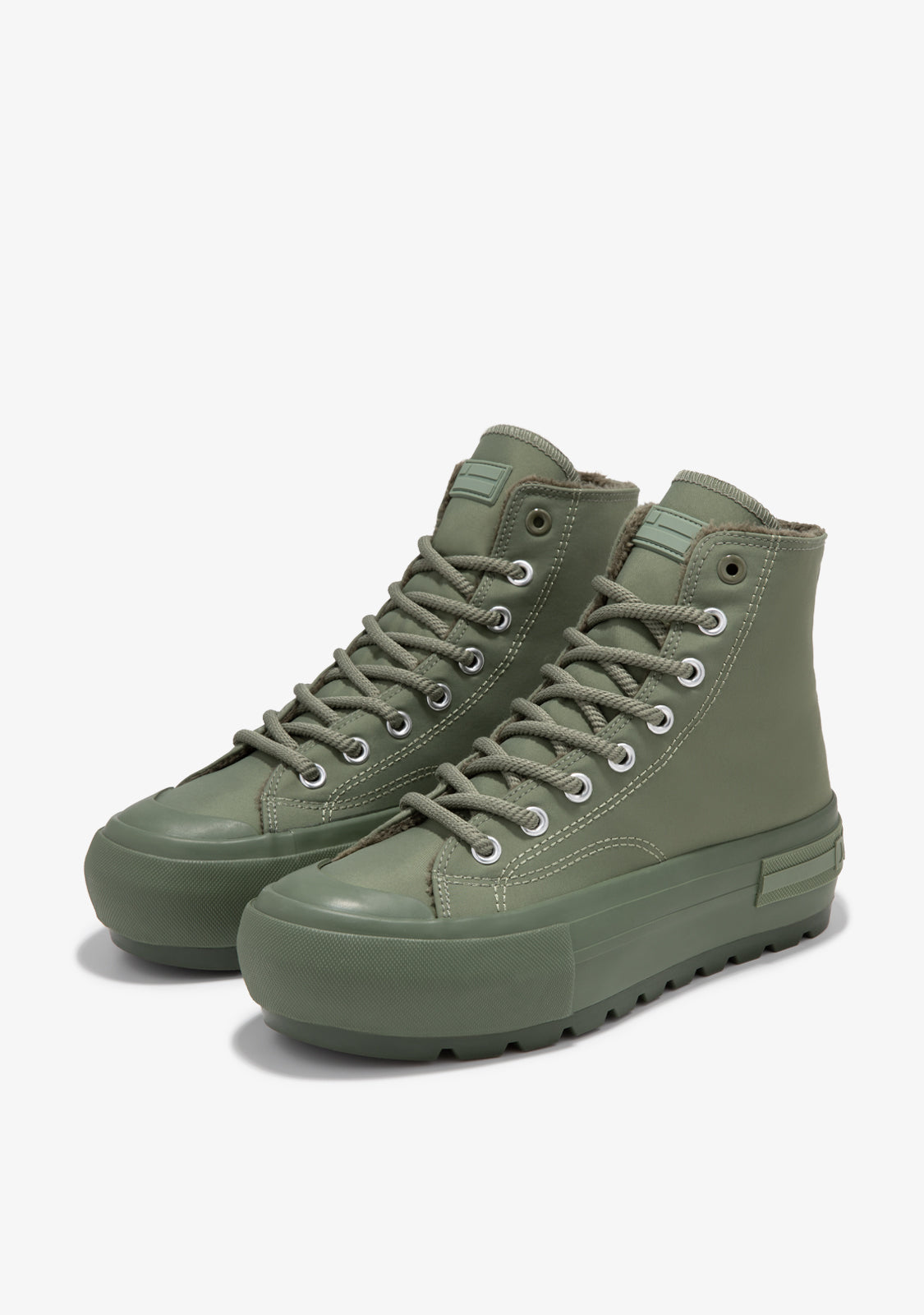 Célébrez le froid avec ce design doublé. Nos baskets allient confort et chaleur dans une botte de cheville de teinte verte. Des lacets ronds assortis leur donnent une esthétique urbaine et un soutien parfait.