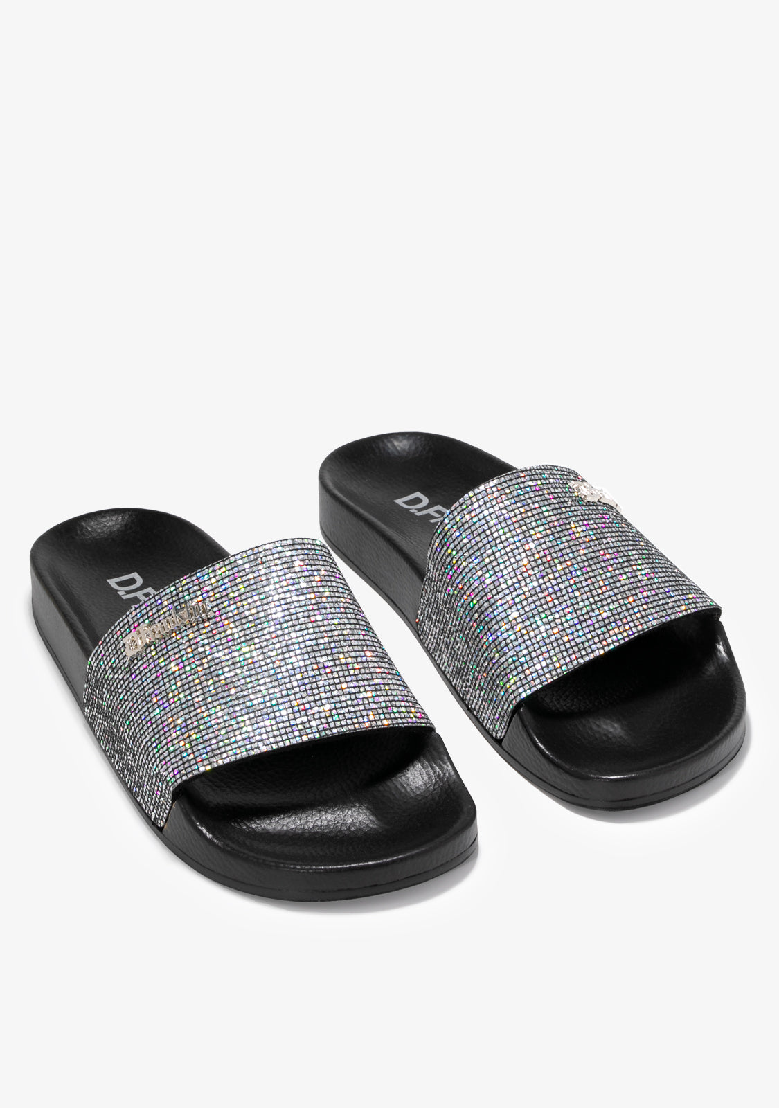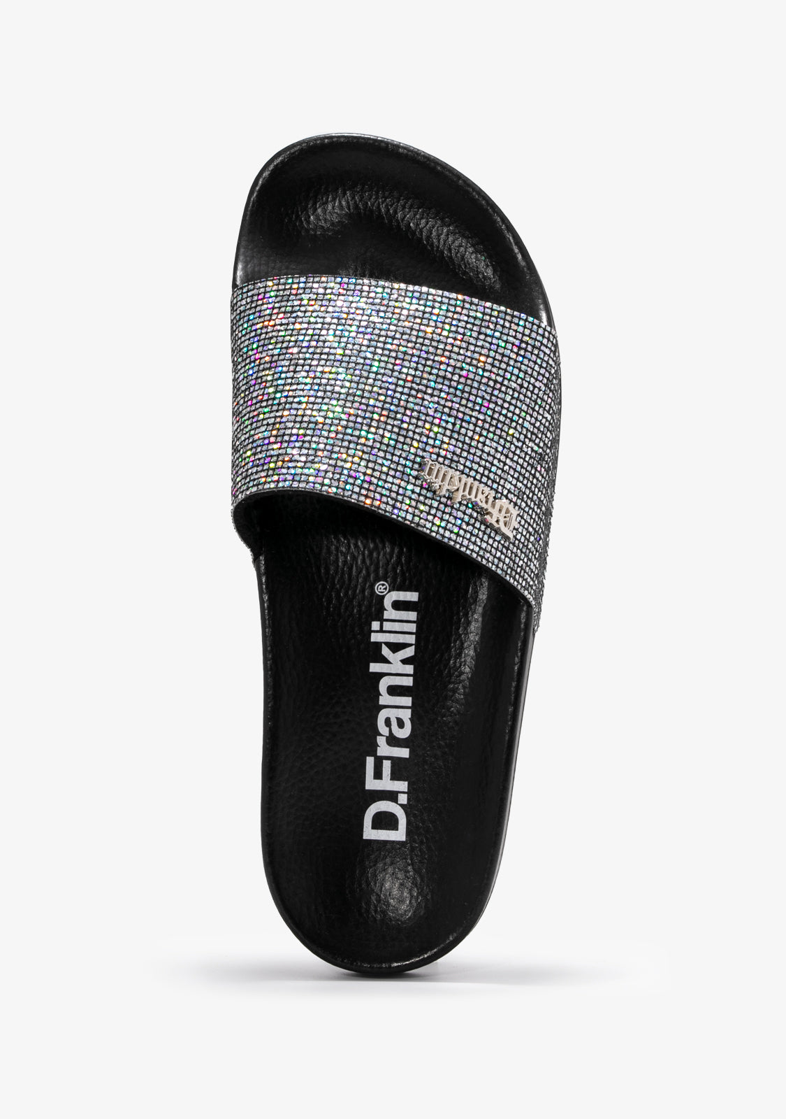 Les sandales D.Franklin Pala Slide Patent présentent une large sangle synthétique avec un imprimé pailleté pour un maintien sécurisé. Elles arborent également notre emblème D.Franklin sur le dessus. La conception de la semelle est moulée pour épouser parfaitement la forme du pied.