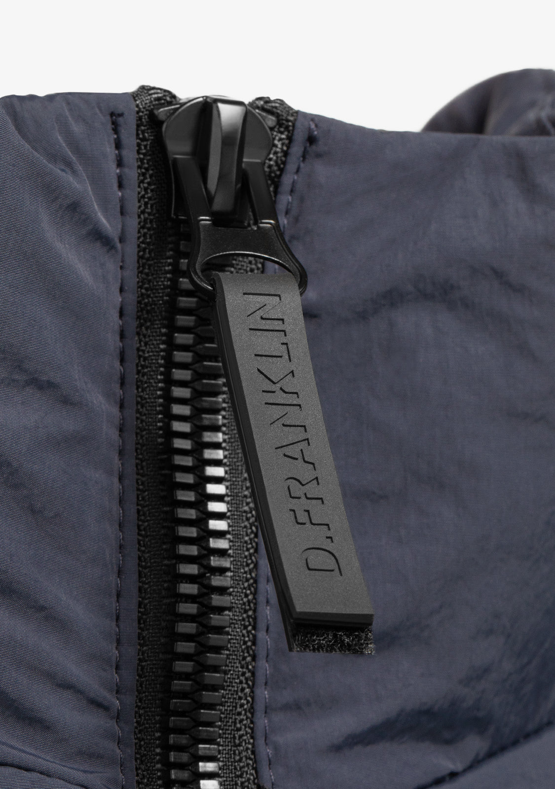 Ce design D.Franklin en navy dispose de poches et d'une fermeture éclair à l'avant. De plus, il possède également une poche intérieure avec le même type de fermeture. Ses poignets et son ourlet sont élastiques et ajustables, permettant à la veste de s'adapter parfaitement.