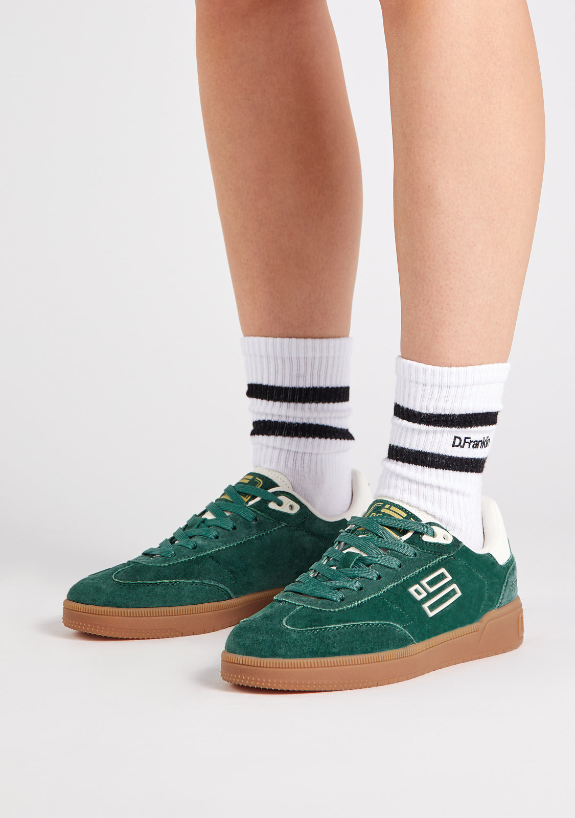 Les Rebel D.Franklin présentent une silhouette basse dans des nuances de vert. Elles comportent une sélection de détails qui définissent leur essence. Elles disposent d'un logo en relief sur le talon et la semelle, d'un drapeau brodé sur le côté et du nom du design à l'arrière. La semelle en caoutchouc de 2 cm offre une adhérence et une traction supérieures.