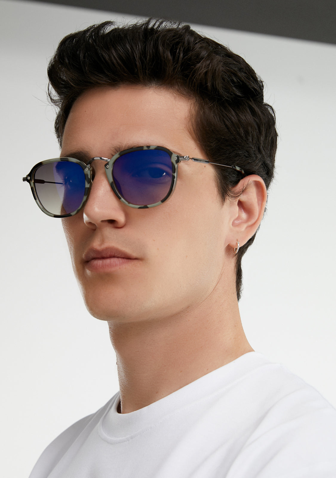 Les lentilles REVO miroir en polycarbonate fumé présentent une silhouette métallique avec une monture carrée. Elles mettent en avant les détails signature de notre marque : le logo gravé sur les deux branches en métal et notre emblème sur la lentille droite. Avec une largeur de lentille de 51 mm et un cadre avant de 147 mm, ces lunettes mettent en valeur tous les visages. Les branches latérales sont en acier inoxydable et mesurent 145 mm de long.