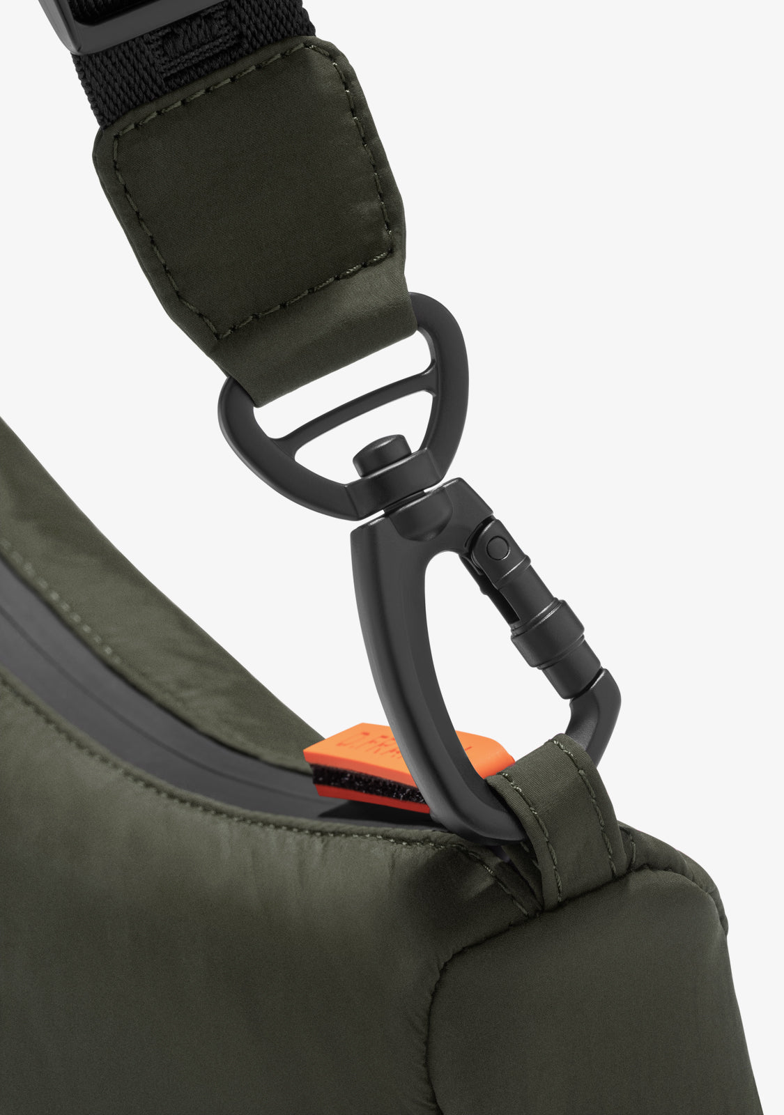 Ce design à finition verte est fabriqué à partir de matériaux techniques qui le rendent léger et durable. L'intérieur comporte une poche zippée et deux petits compartiments organisateurs.
