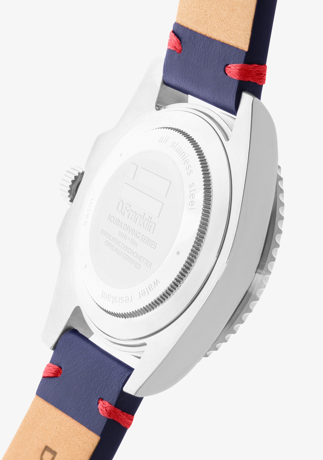 Les modèles Scuba Diving font partie de la nouvelle collection de montres pour hommes D.Franklin®. Une édition limitée pour eux, avec un mécanisme à 3 aiguilles, un bracelet en cuir synthétique et un cadran recouvert de saphir. Le modèle Scuba Diving Navy Black Red / Black mise sur les détails. Son bracelet fini en marine à côté du cadran noir avec des détails rouges unifie un modèle au style unique.