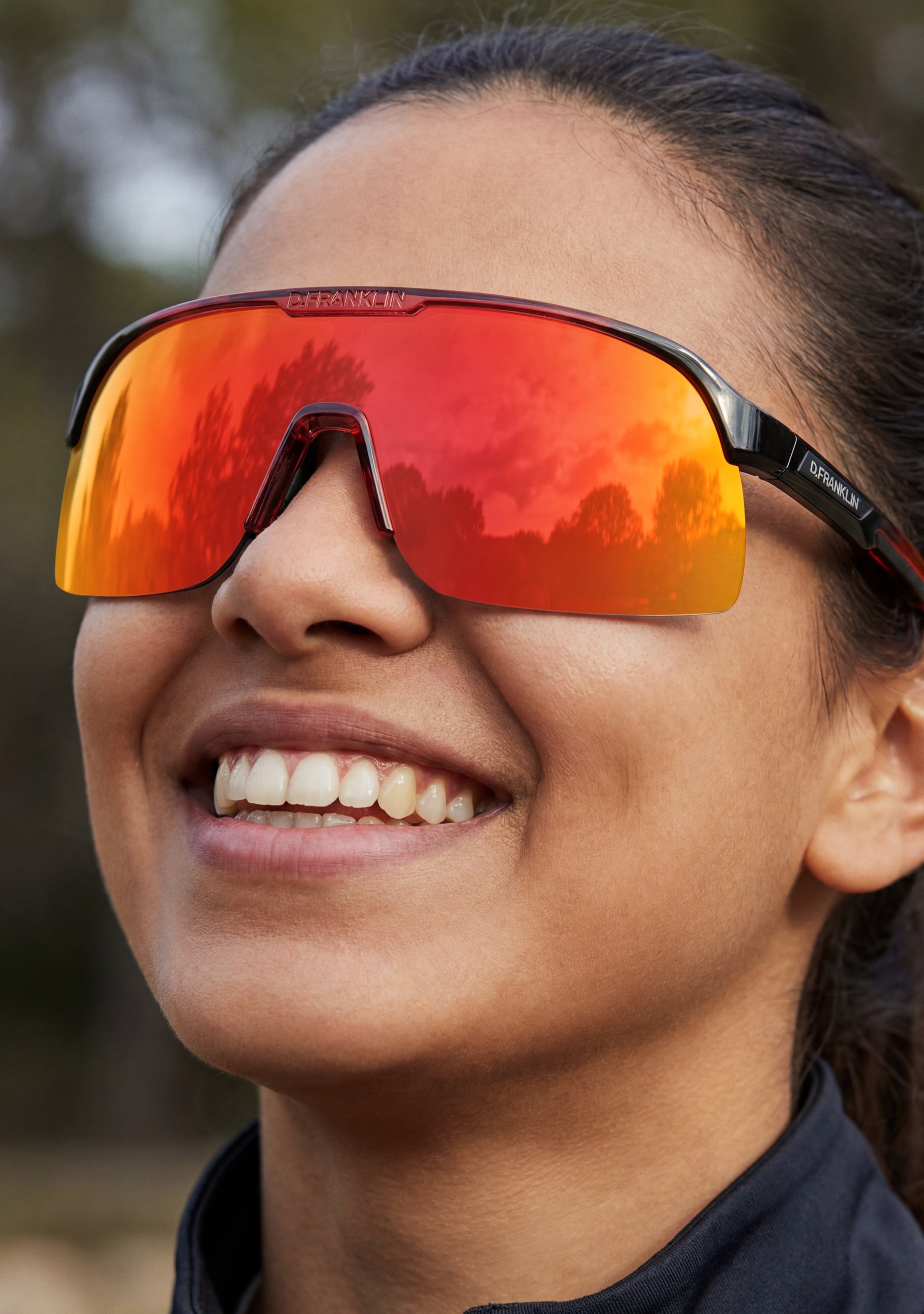 Lunettes de sport avec des verres panoramiques. Un design inspiré par la vitesse et le mouvement, créé pour s'adapter à tous les contextes.